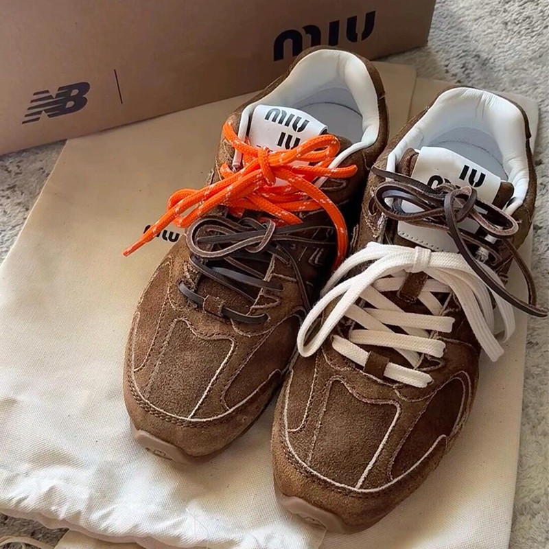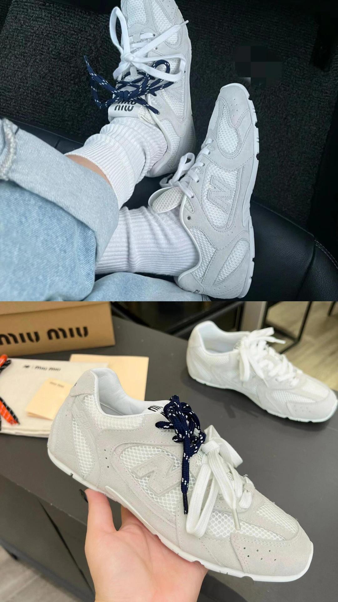 미우와 동일한 스타일의 n530 데훈 슈즈 여성용 2024 신상 컬러블록 가죽 통기성 캐주얼 운동화