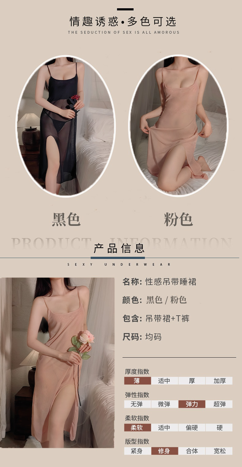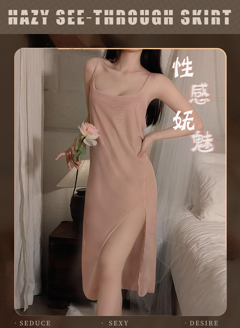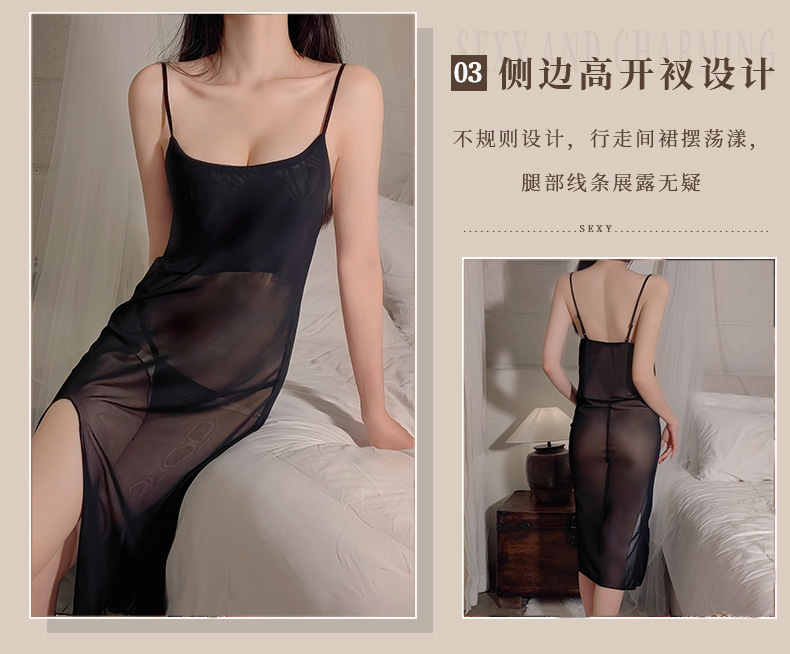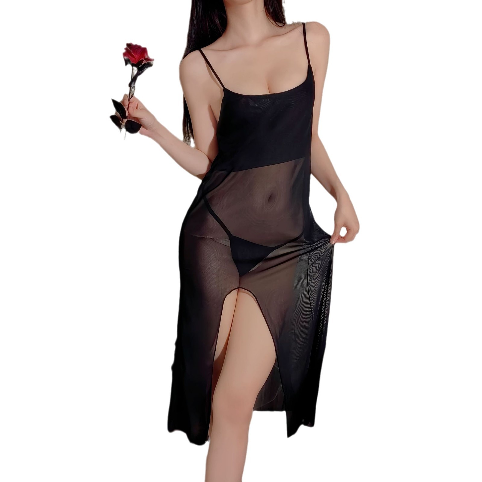 섹시한 메쉬 서스펜더 스커트, 섹시한 속옷, 시스루 유혹 슬릿 롱 스커트, 열정적인 유혹, 여성용 귀여운 잠옷 세트