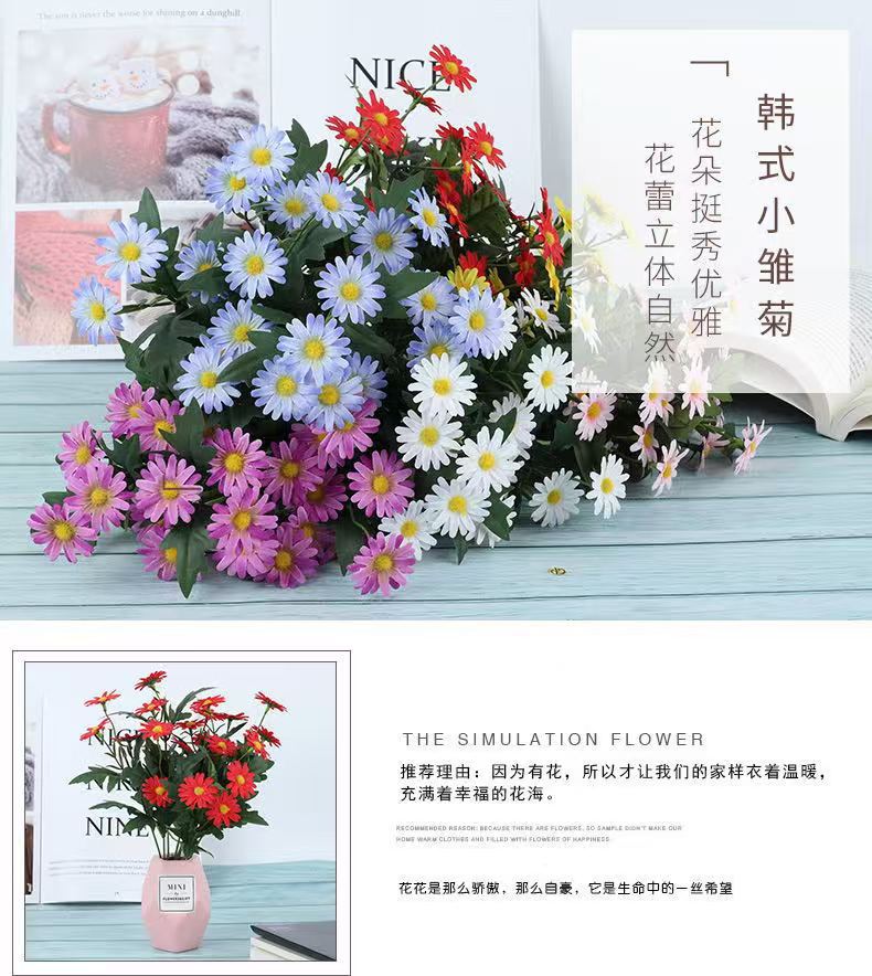 조화 9개, 꽃 24개, 한국식 작은 데이지, 목가적 스타일, 꽃다발, 가정용 가구, 장식용 실크 야생 국화