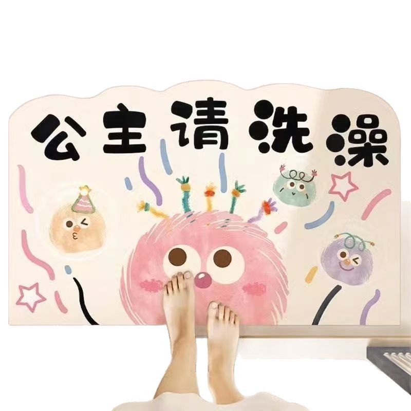 만화 캐릭터 털볼 욕실용 재미있는 흡수성 바닥 매트, 가정용 화장실 입구 규조토 미끄럼 방지 속건 발매트 현관용