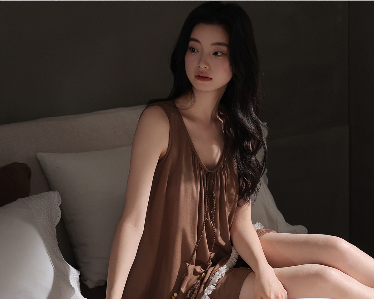 [슈퍼 소프트] 가슴 패드 여성의 여름 카미솔 반바지 모달 레트로 스타일 홈 옷을 입은 새로운 스타일 파자마