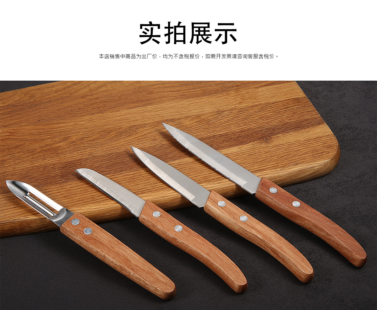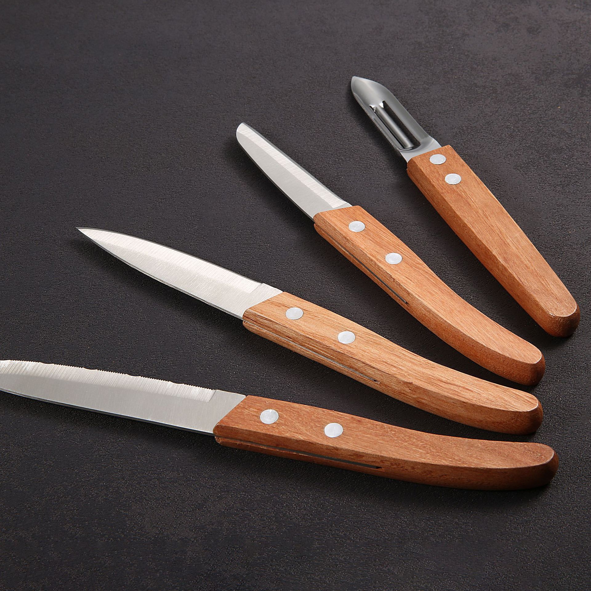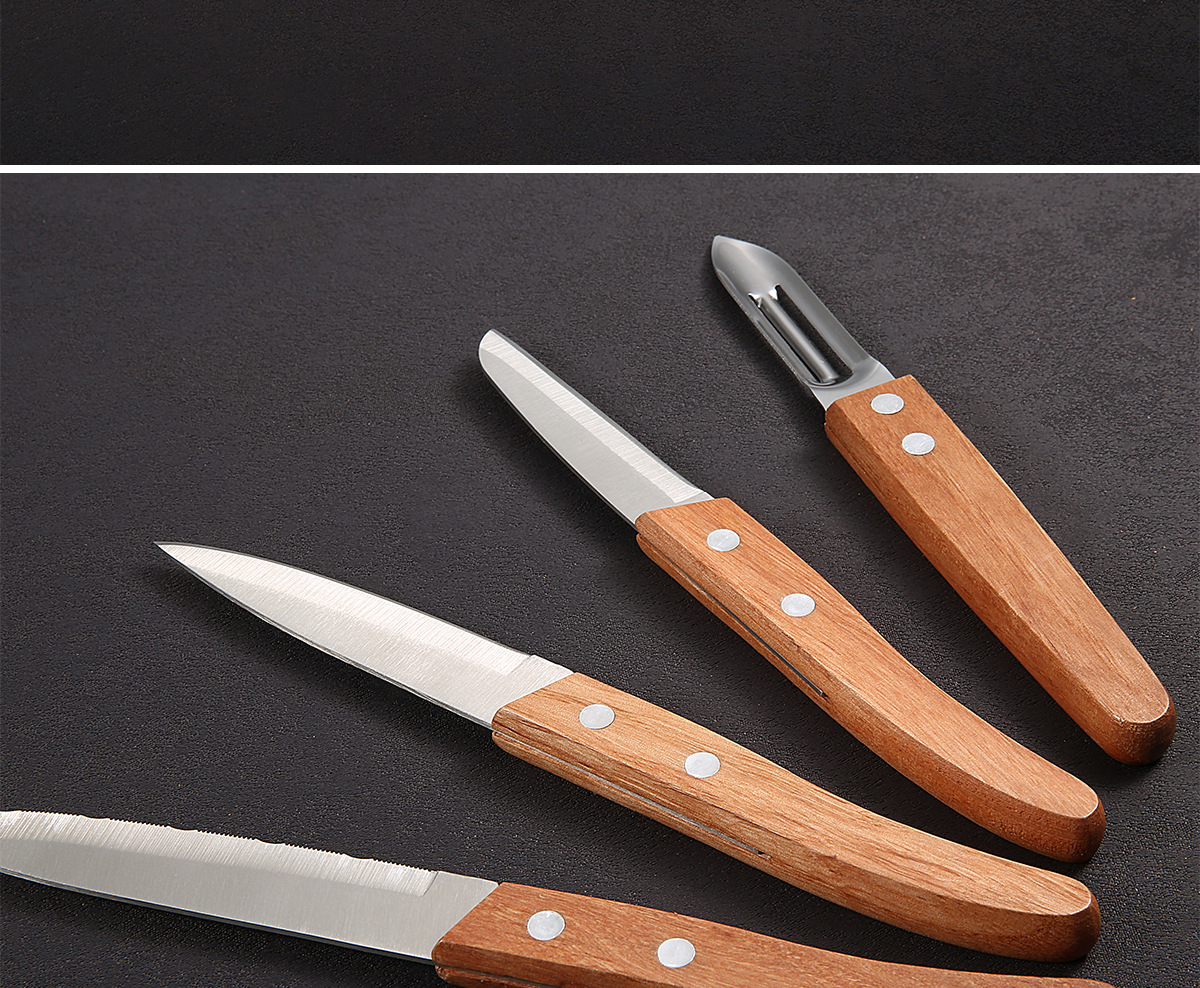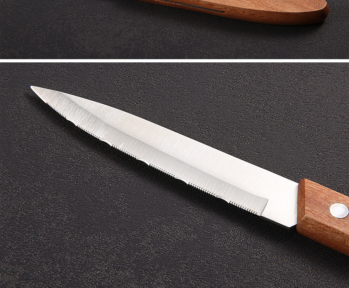 재고 있음 도매 2 위안 과일 칼 마호가니 손잡이 톱니 모양의 칼 가볍고 휴대하기 쉬운 칼 야외 칼 세트