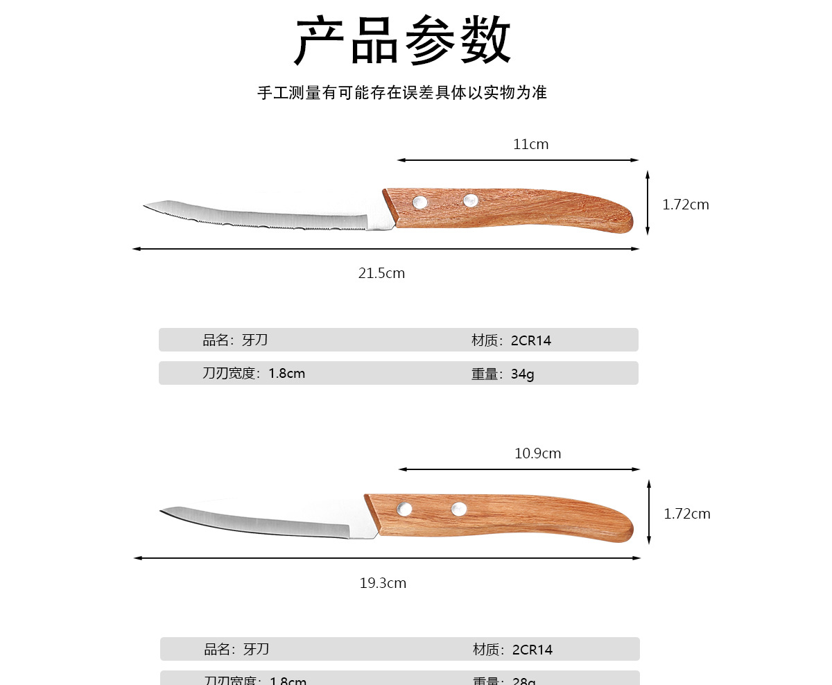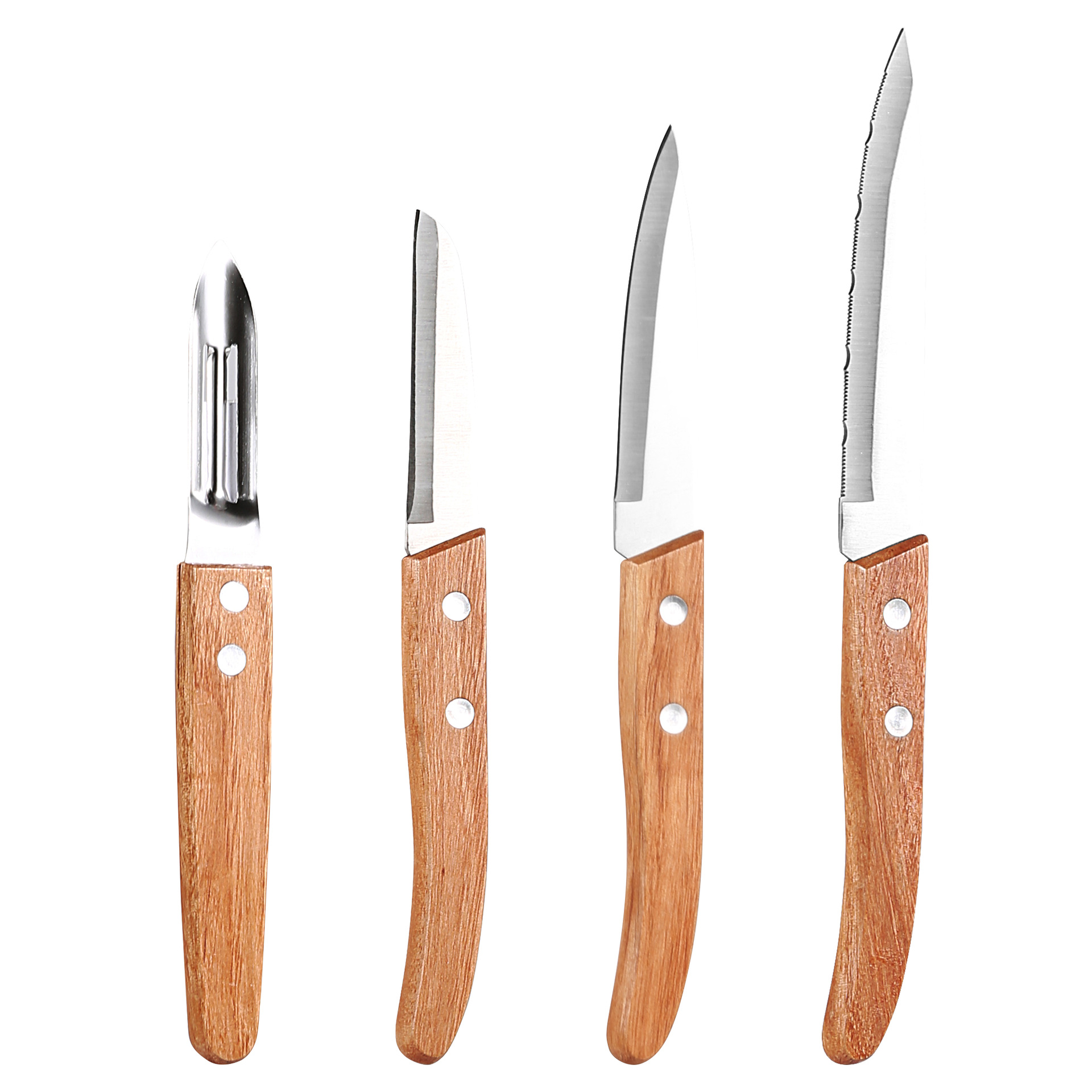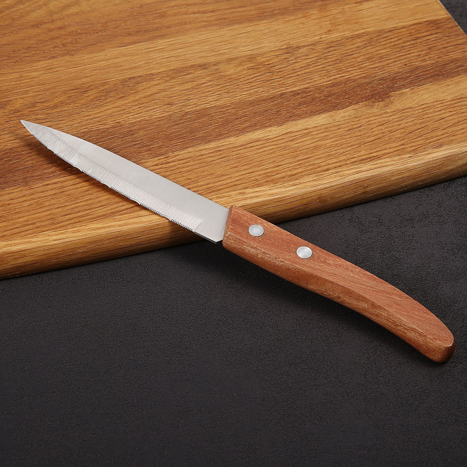 재고 있음 도매 2 위안 과일 칼 마호가니 손잡이 톱니 모양의 칼 가볍고 휴대하기 쉬운 칼 야외 칼 세트