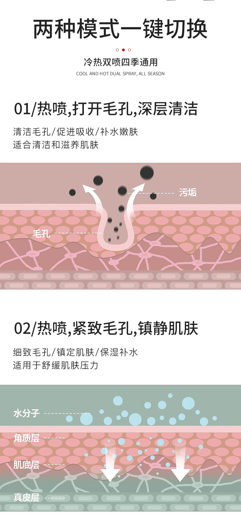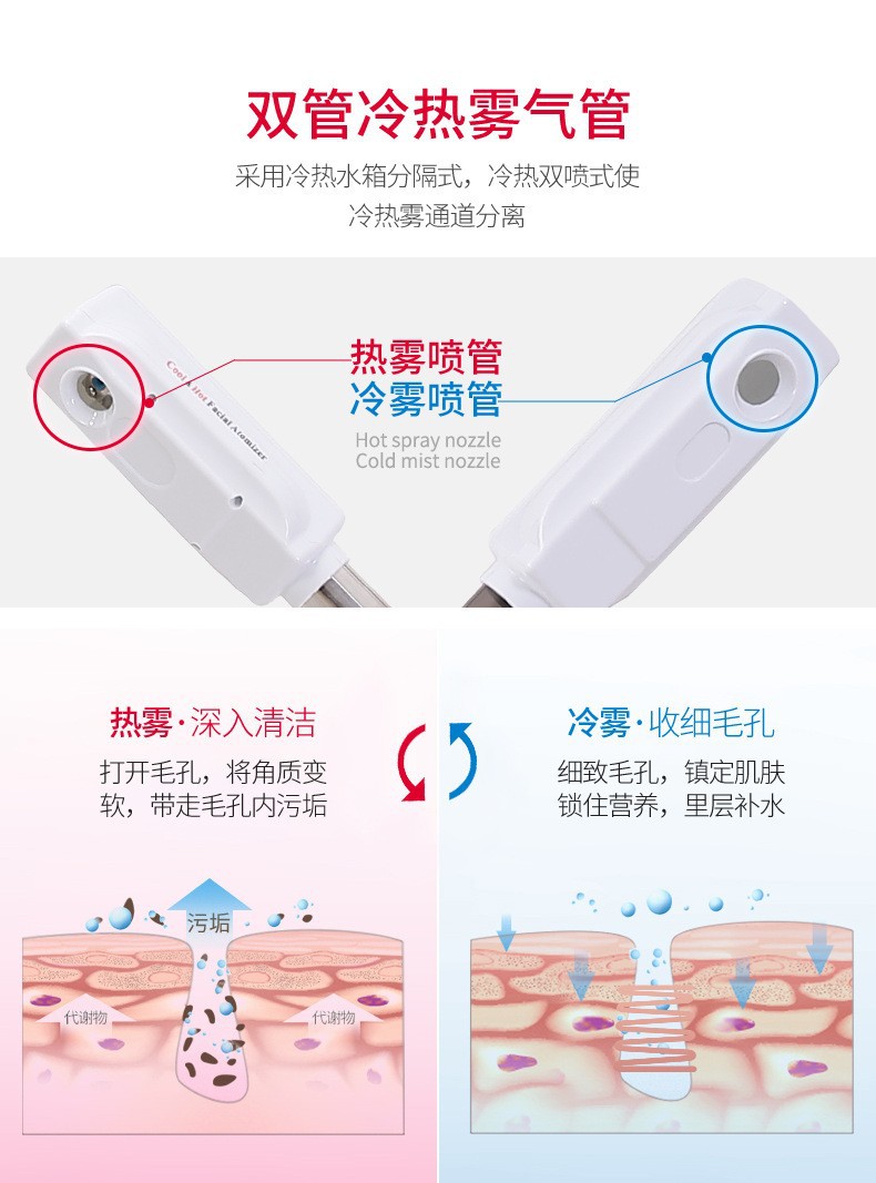 얼굴 스팀기 이중관 냉온 스프레이 기기 미용 전용 가정용 냉온 이중 스프레이 얼굴 보습 스팀기