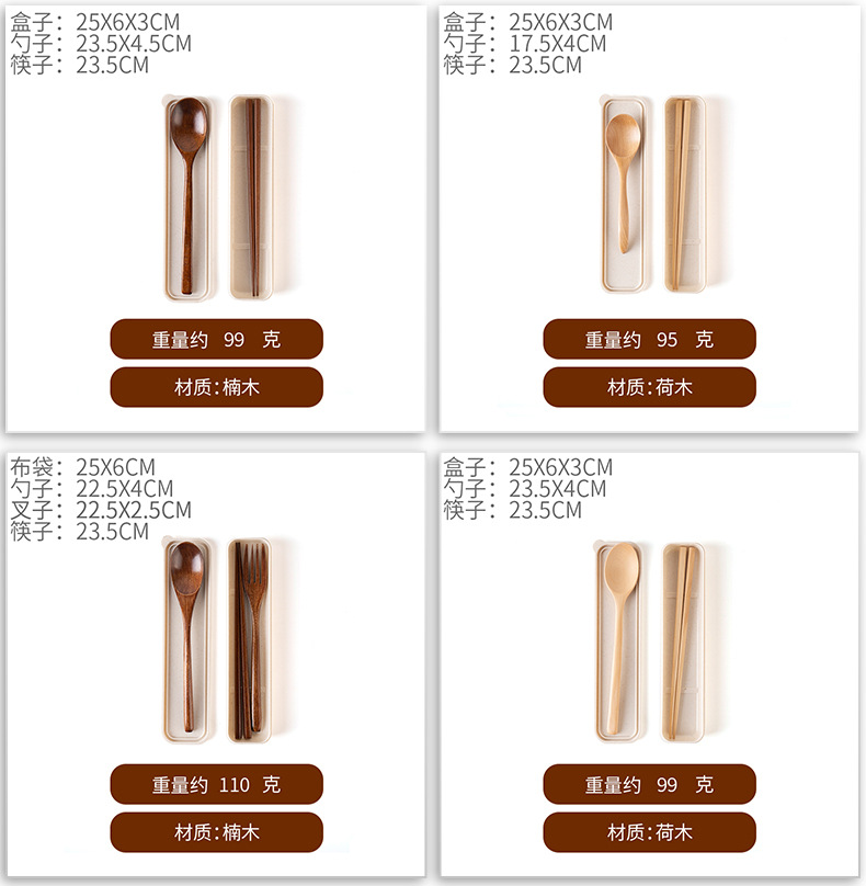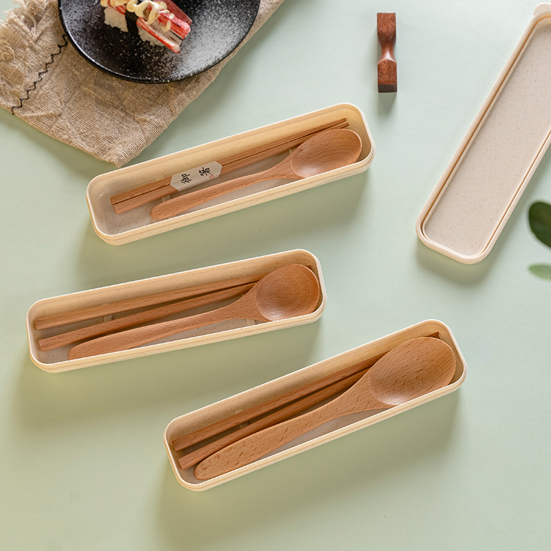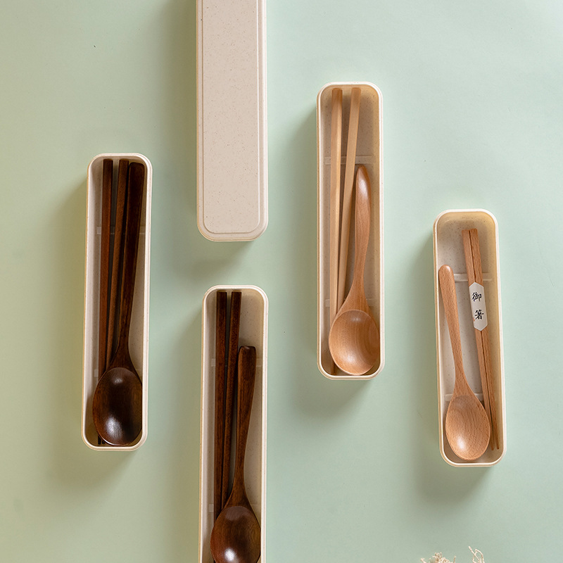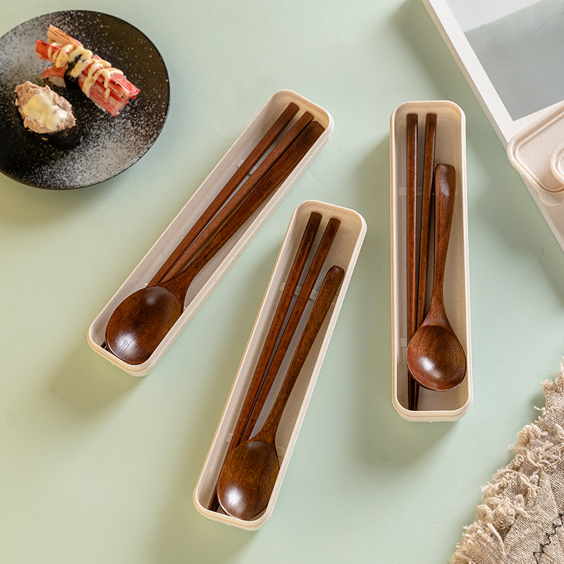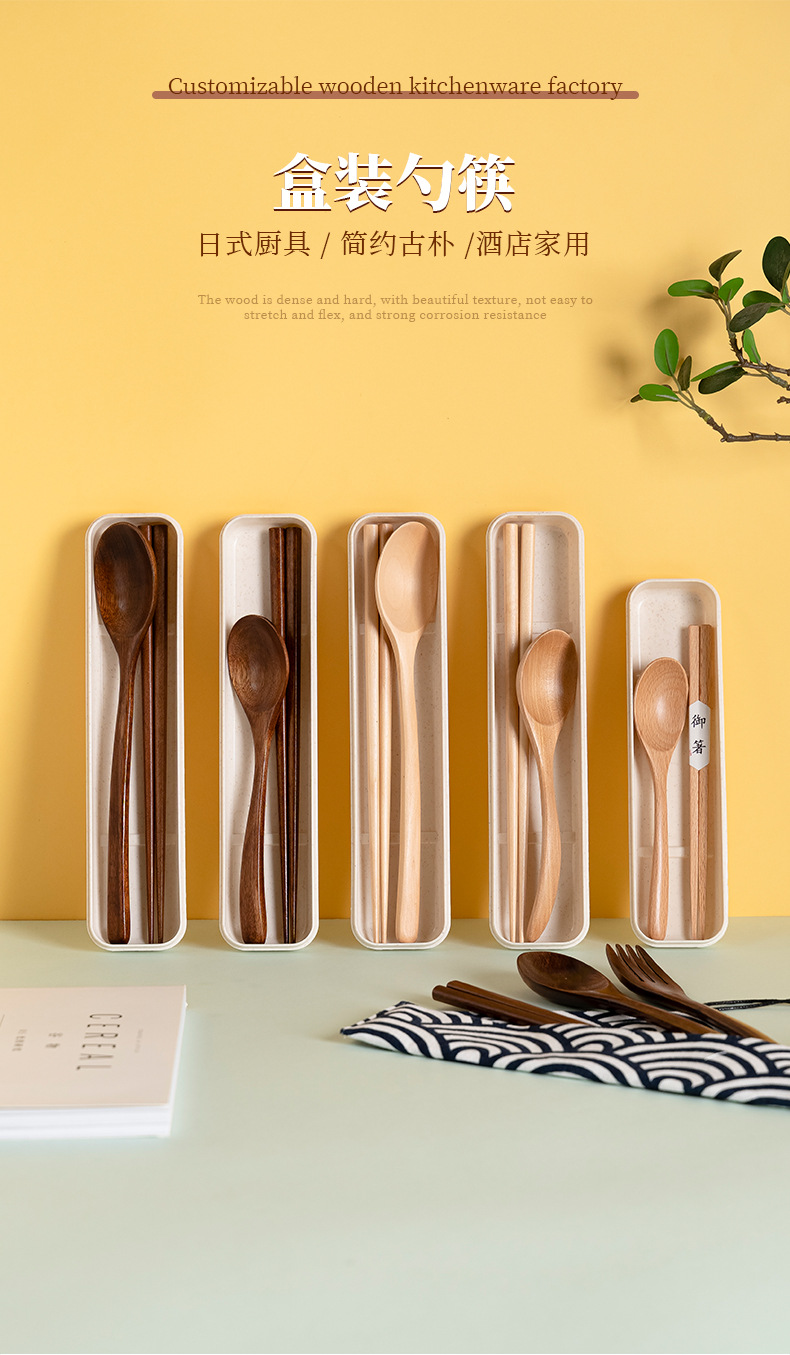 창조적 인 일본 휴대용 식기 선물 상자 사업 선물 여행 세트 단단한 나무 젓가락 숟가락 젓가락 세트 나무