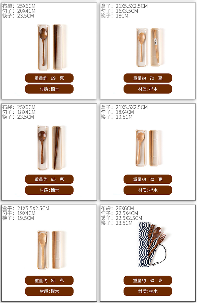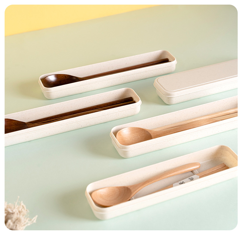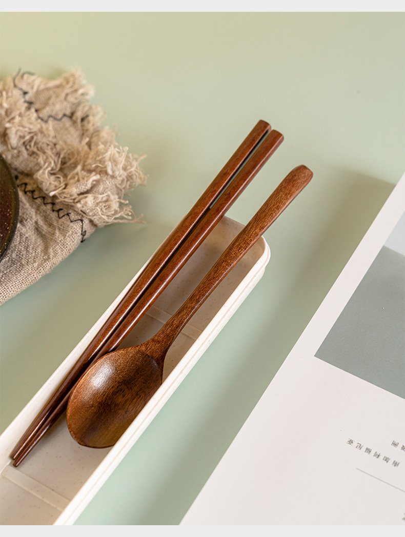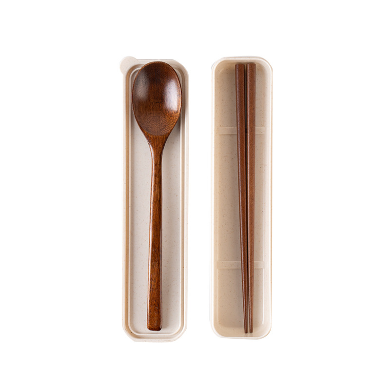창조적 인 일본 휴대용 식기 선물 상자 사업 선물 여행 세트 단단한 나무 젓가락 숟가락 젓가락 세트 나무