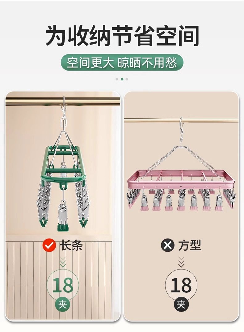 새로운 스테인레스 스틸 양말 건조 랙 멀티 클립 가정용 방풍 원활한 걸이 속옷 속옷 냉각 랙 도매