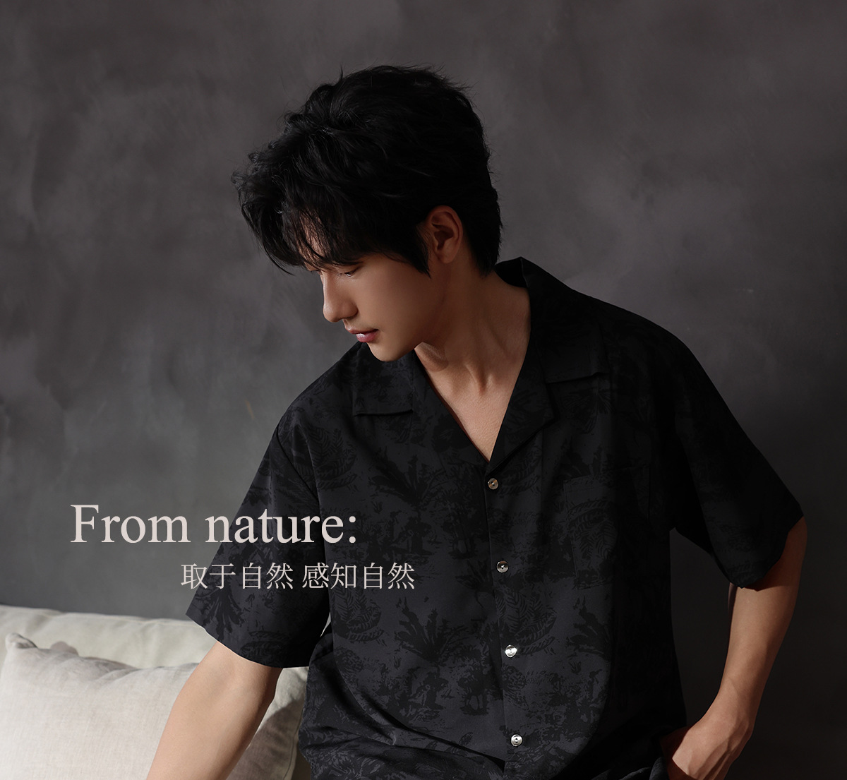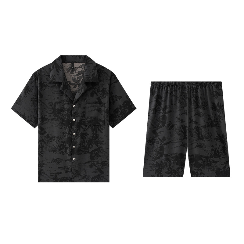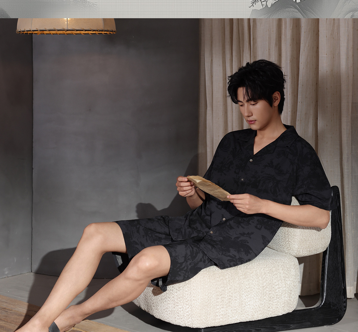 [시원한 느낌] 아이스 실크 파자마 남성 여름 인쇄 느슨한 짧은 소매 반바지 소년 홈 의류 세트 한국판