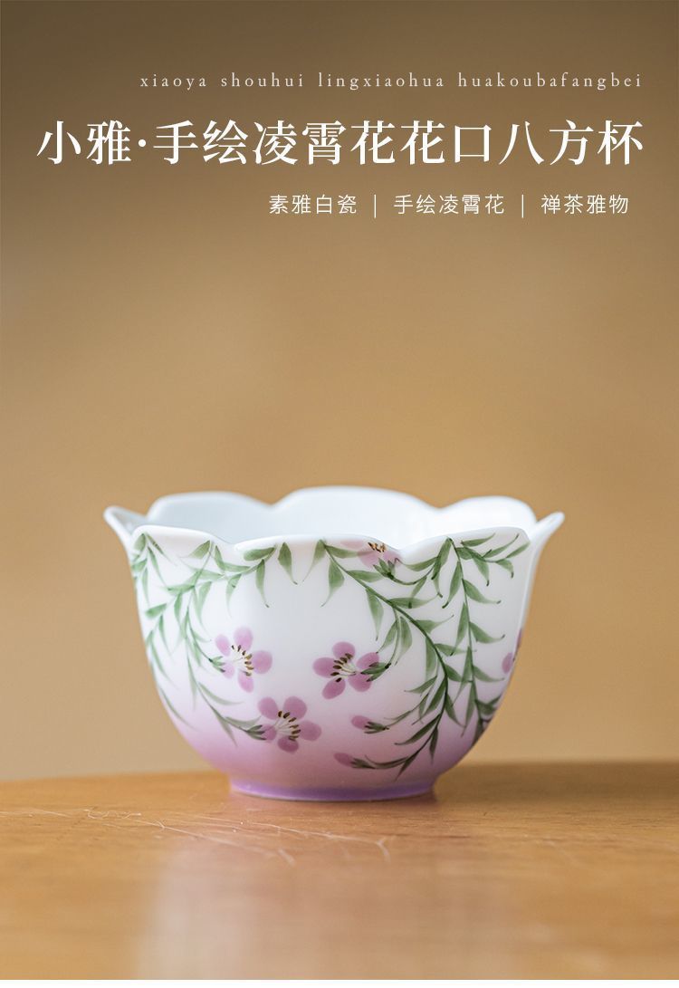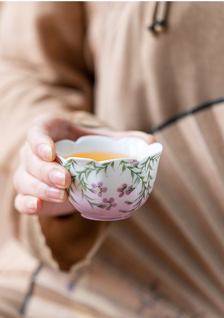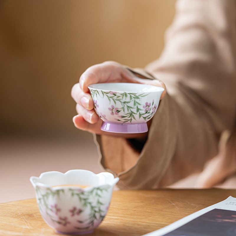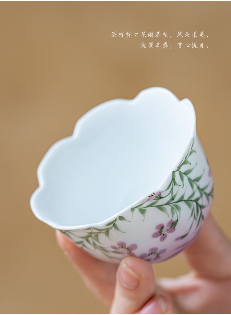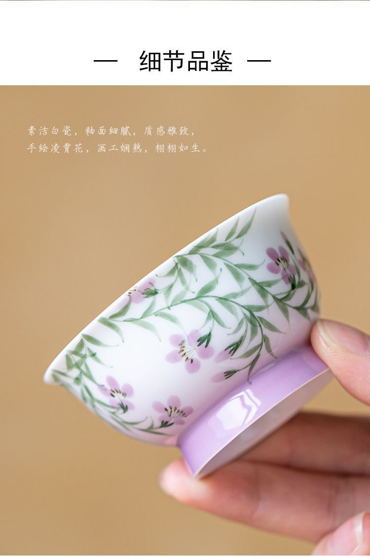 백자 손으로 그린 아케미안 마스터 컵 차 컵 세라믹 쿵푸 차 세트 차 그릇 숙녀 고급 꽃 차 컵