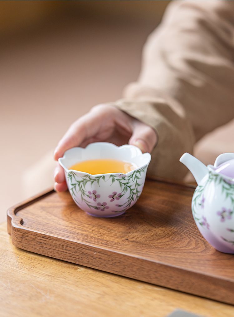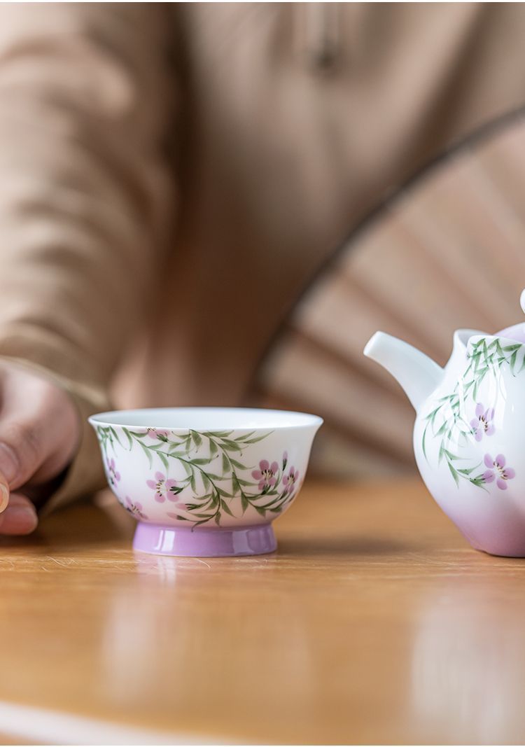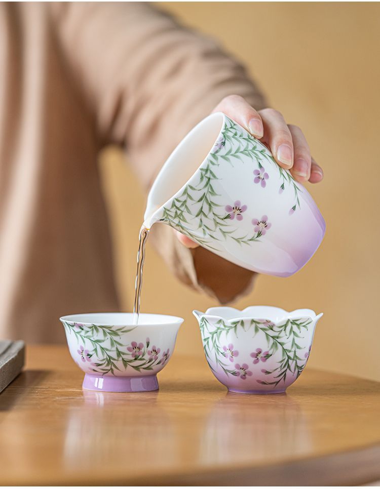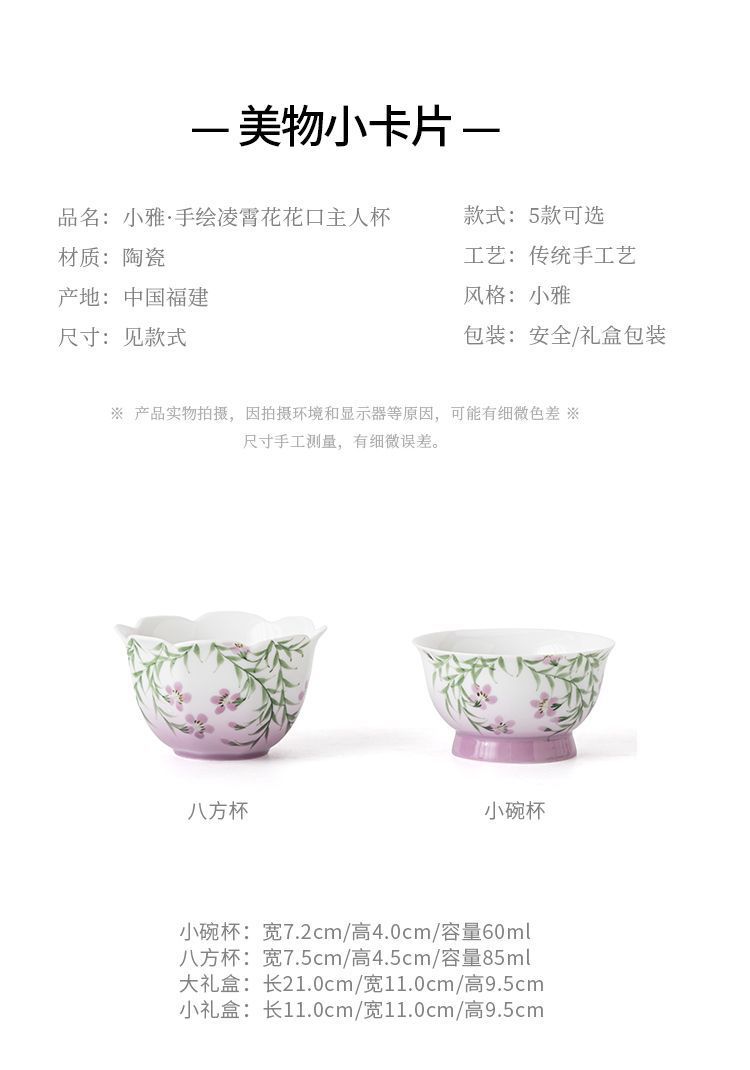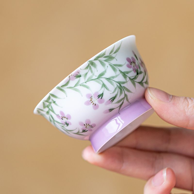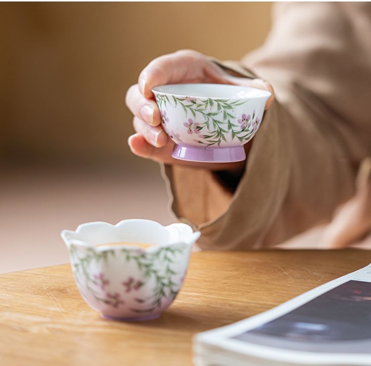 백자 손으로 그린 아케미안 마스터 컵 차 컵 세라믹 쿵푸 차 세트 차 그릇 숙녀 고급 꽃 차 컵