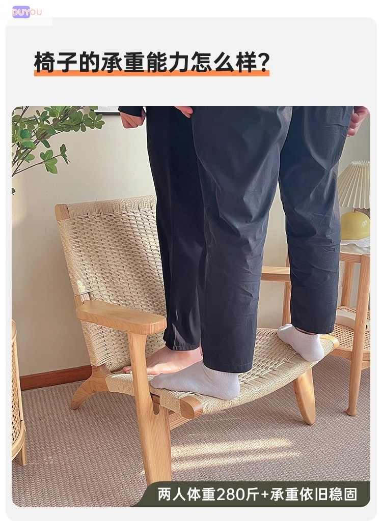 월넛 컬러의자 + 베이지쿠션 (밝은색으로 엮은 밧줄)