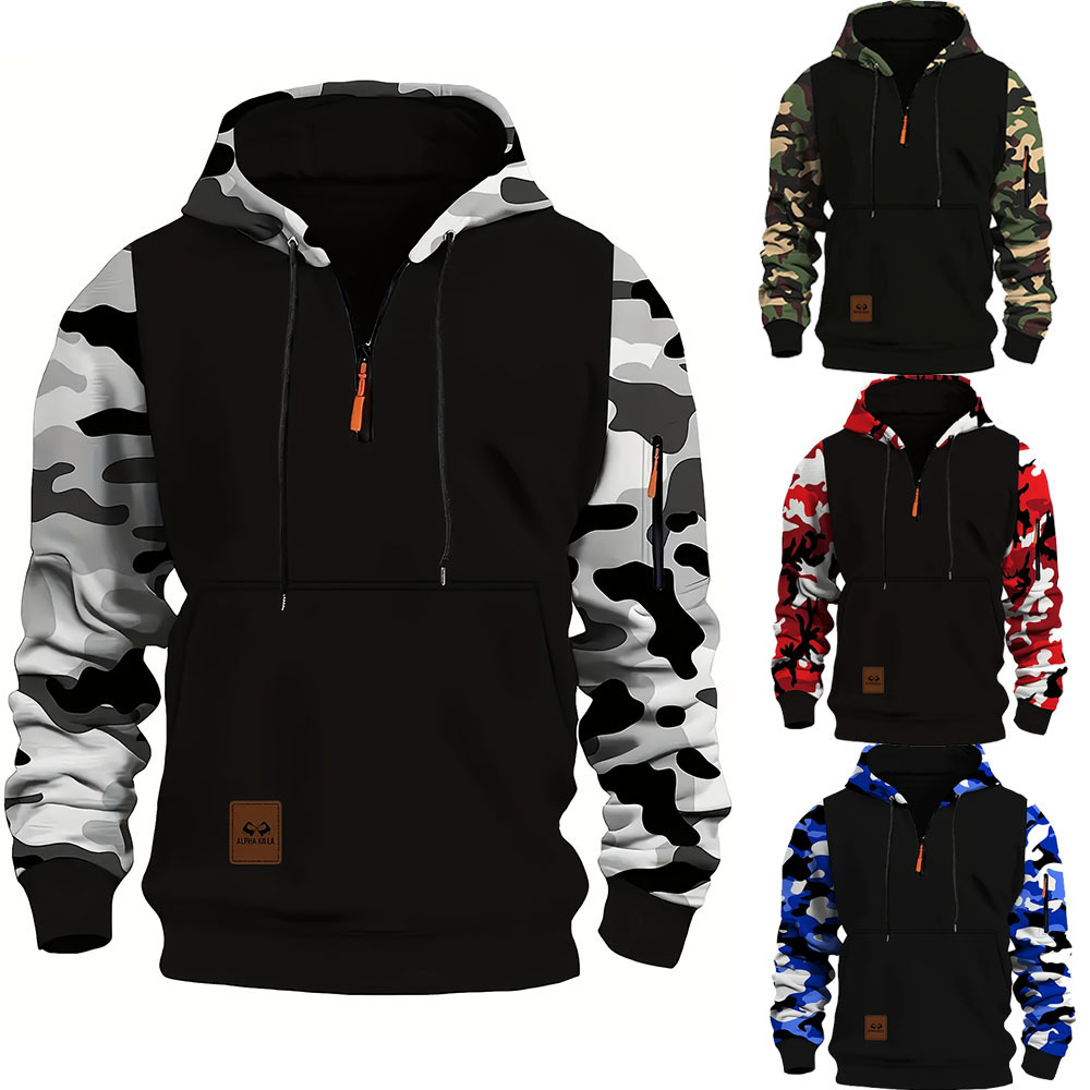 2025 새로운 Amazon 크로스 보더 봄, 가을 위장 패션 미국 후드 남성 및 여성 스포츠 컬러 매칭 스웨트 남성 의류
