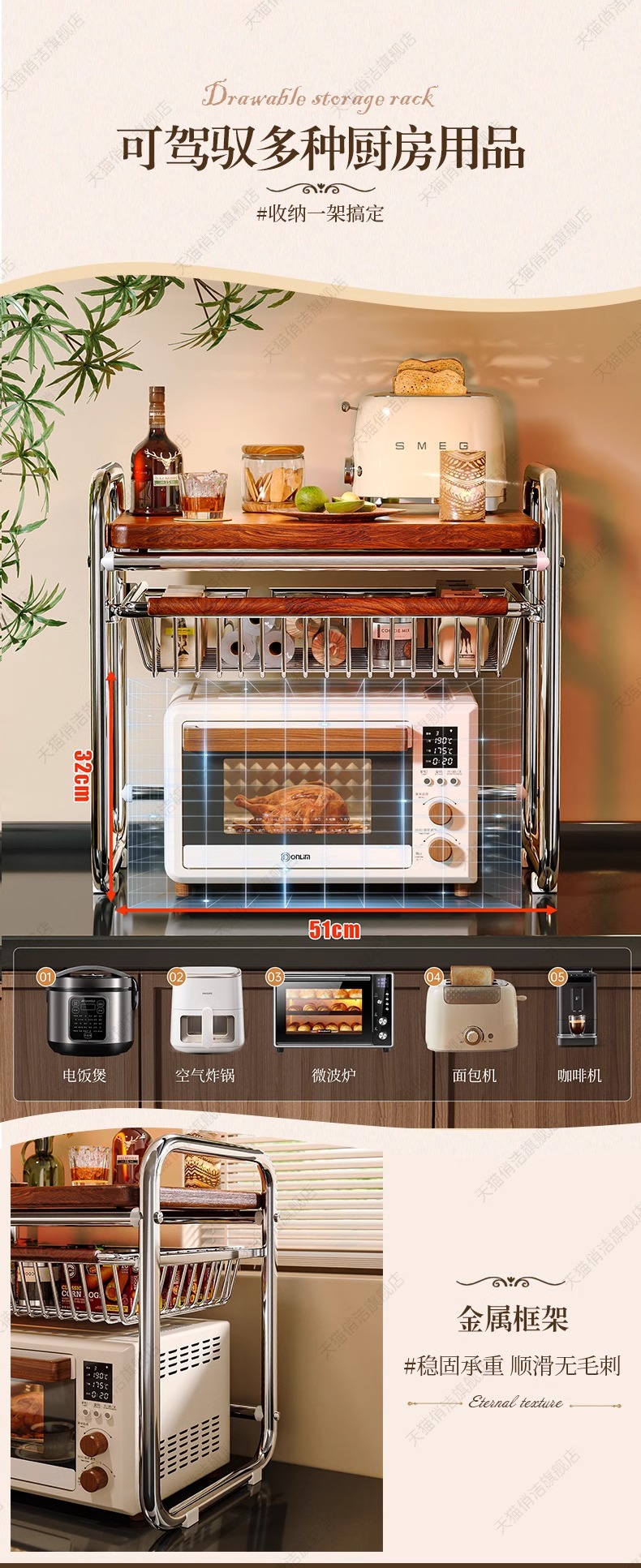 새로운 골동품 전자 레인지 저장 랙 주방 카운터 탑 오븐 브래킷 다기능 저장 쌀밥솥 보관