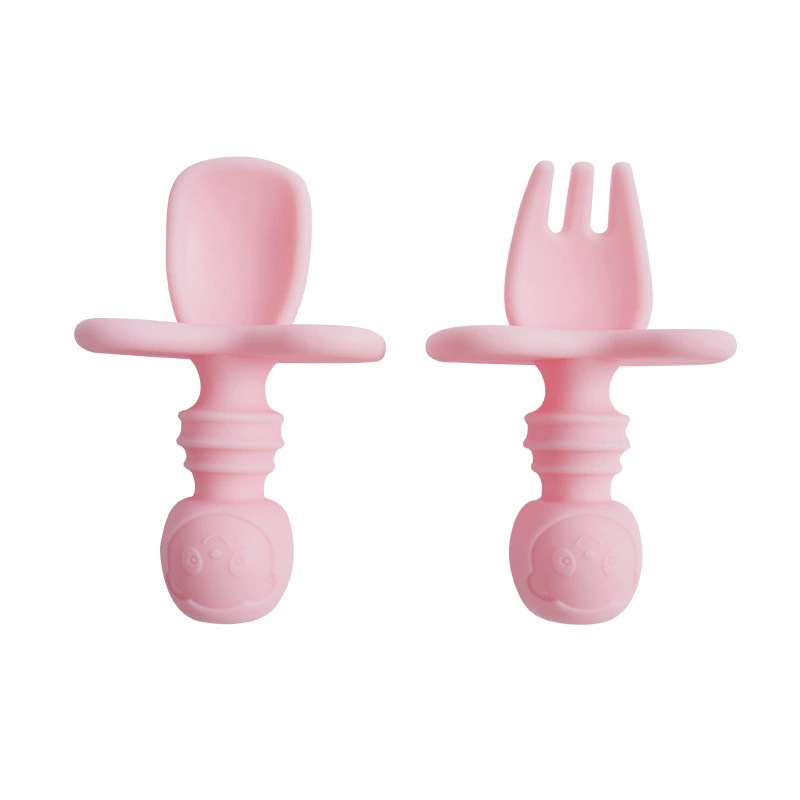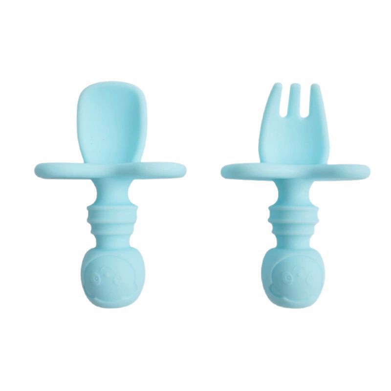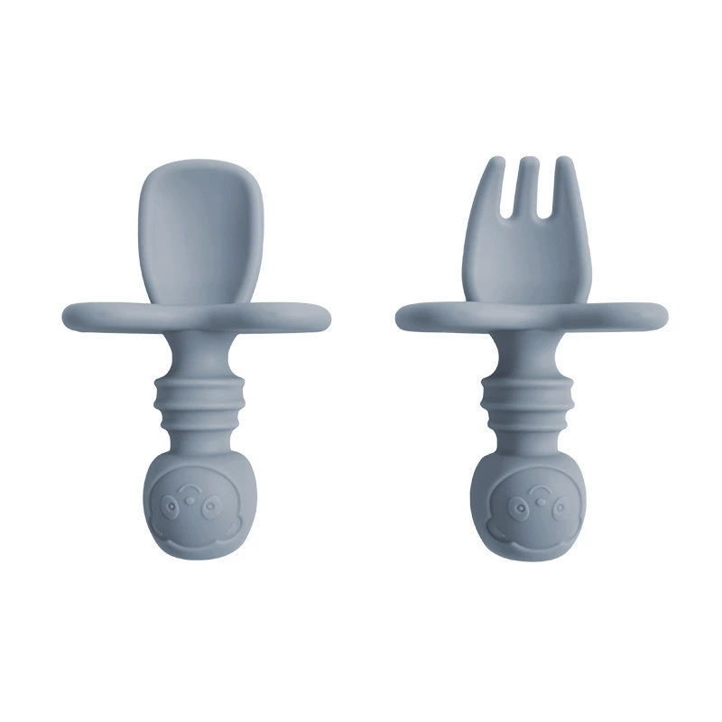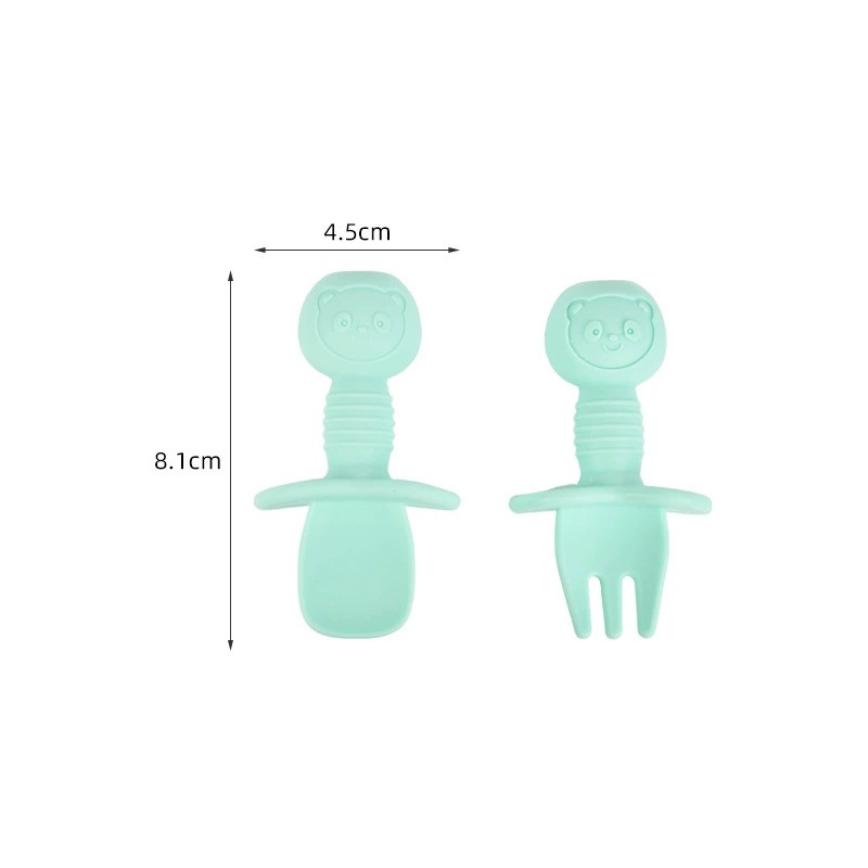 아기 식기 실리콘 포크 스푼 아기 훈련용 짧은 손잡이 학습용 식기 이갈이 도구 부드러운 포크 스푼