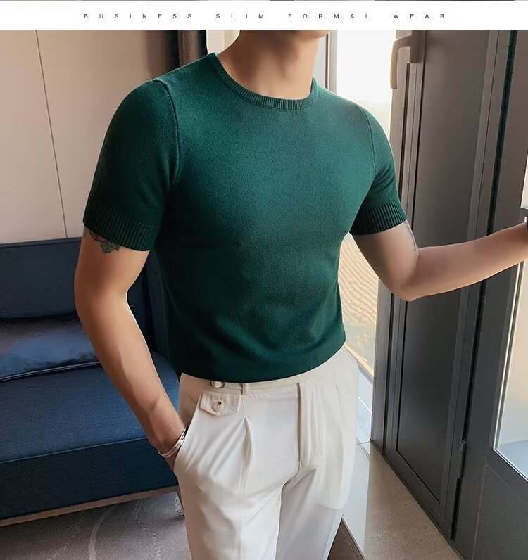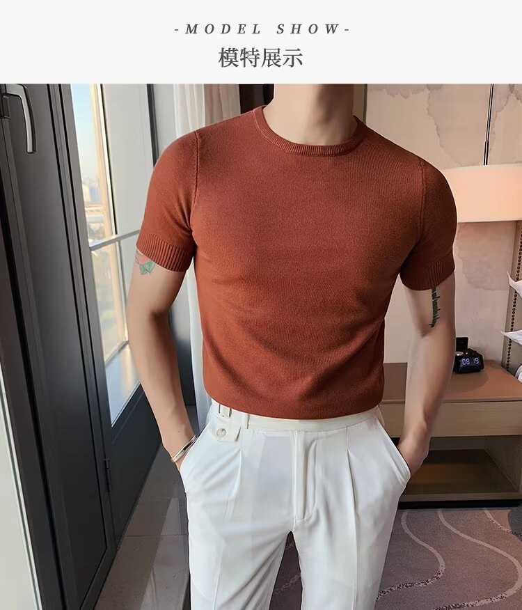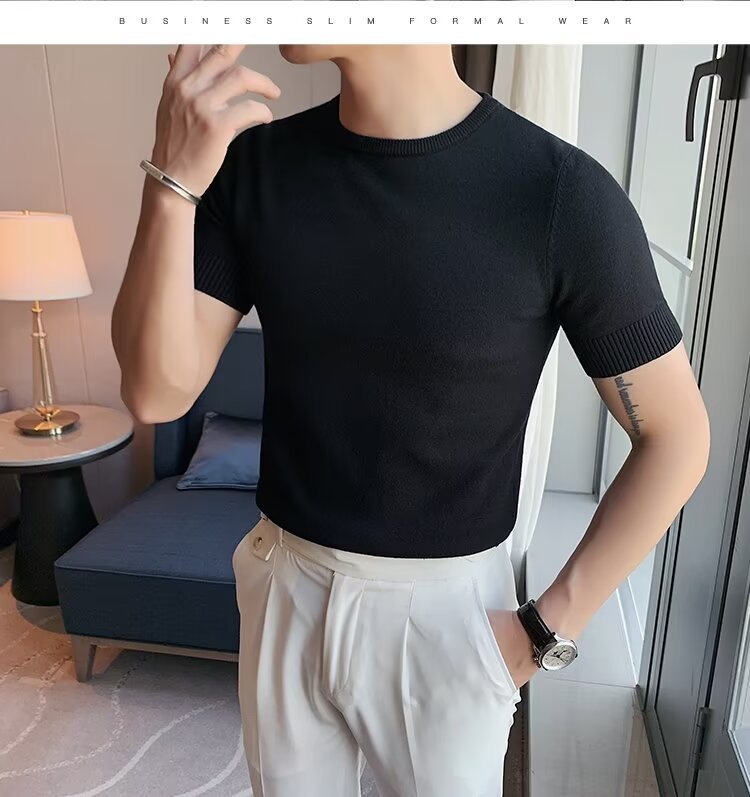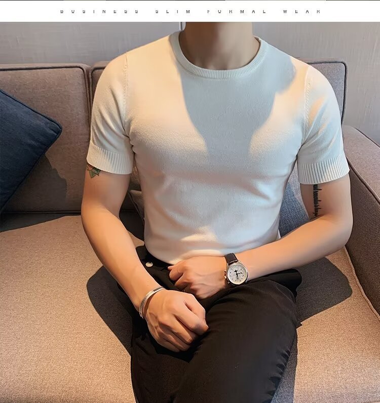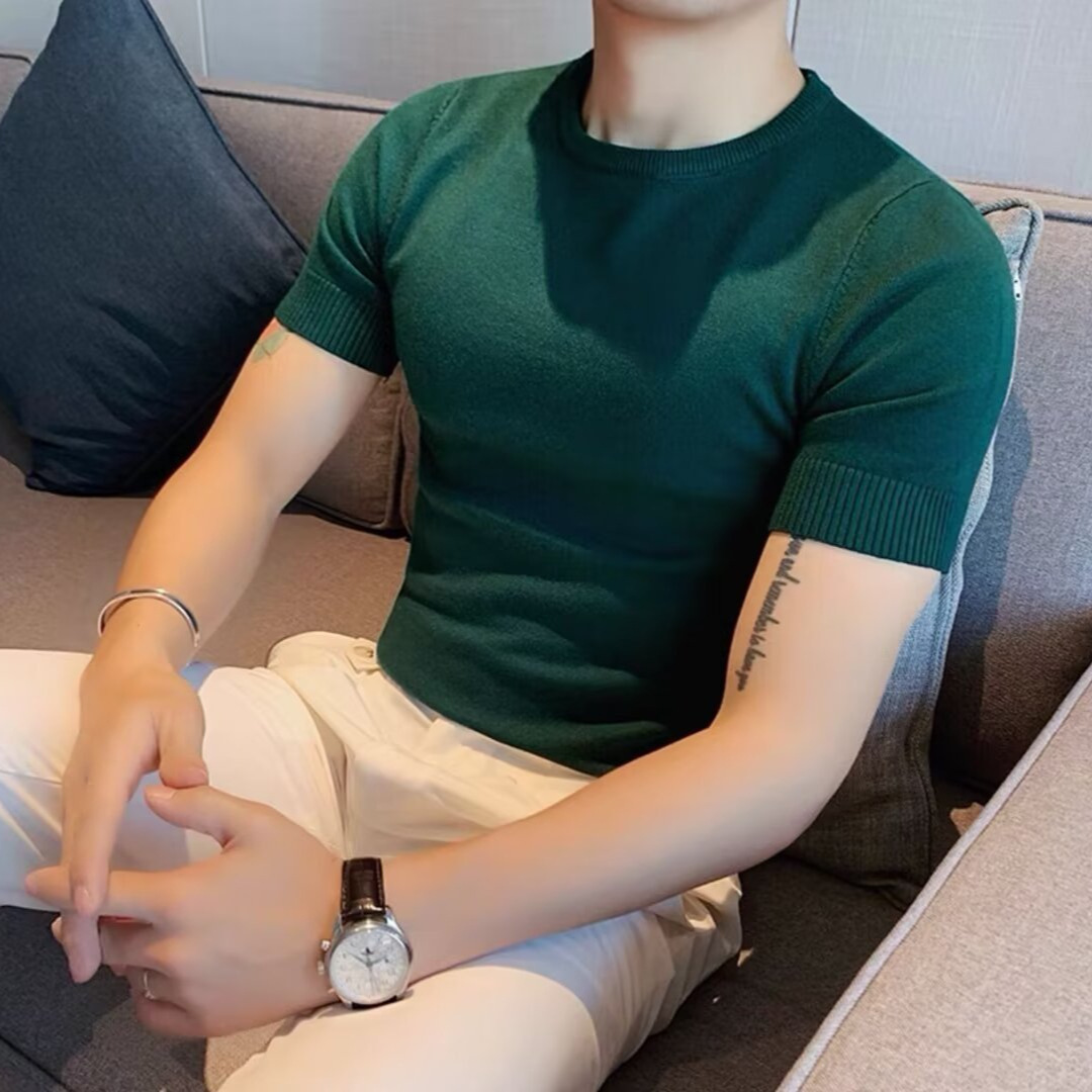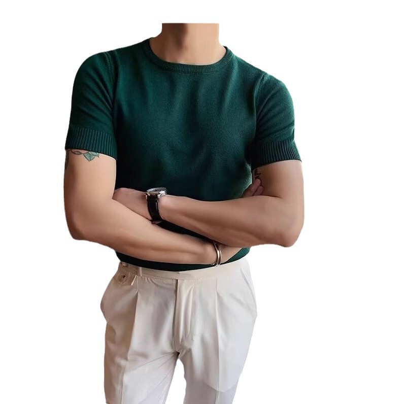 반팔 스웨터 남성용 반팔 티셔츠 2025 신상 하프 터틀넥 이너웨어 남성용 봄 미드 칼라 니트 바닥 셔츠