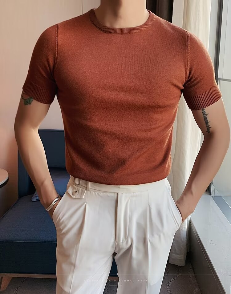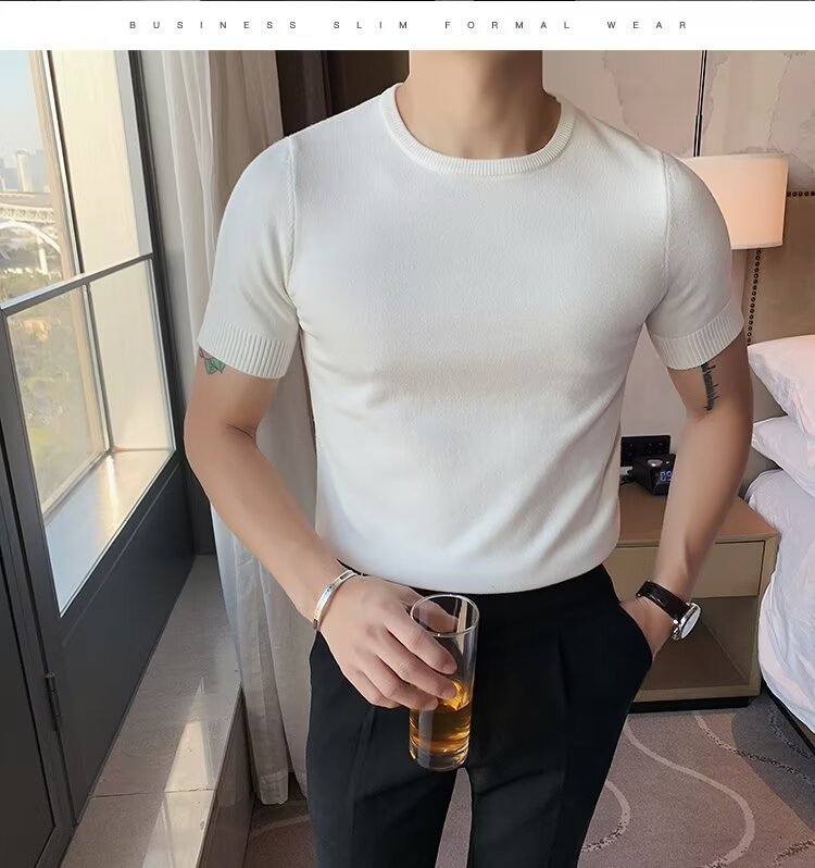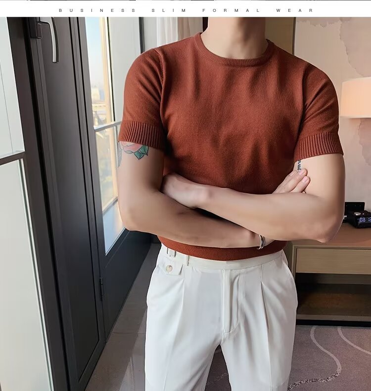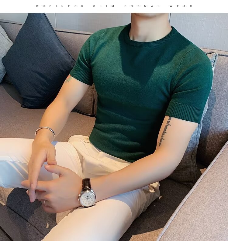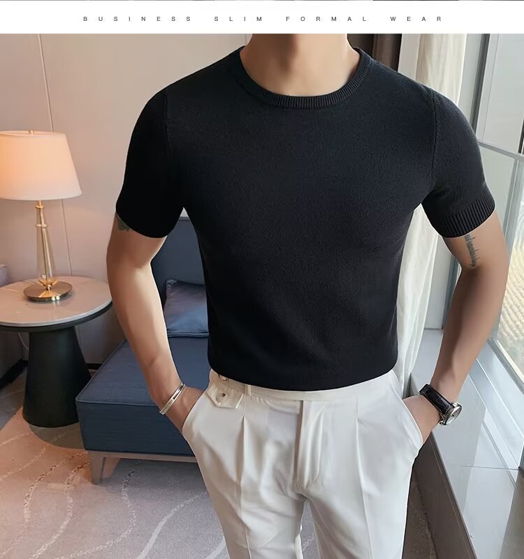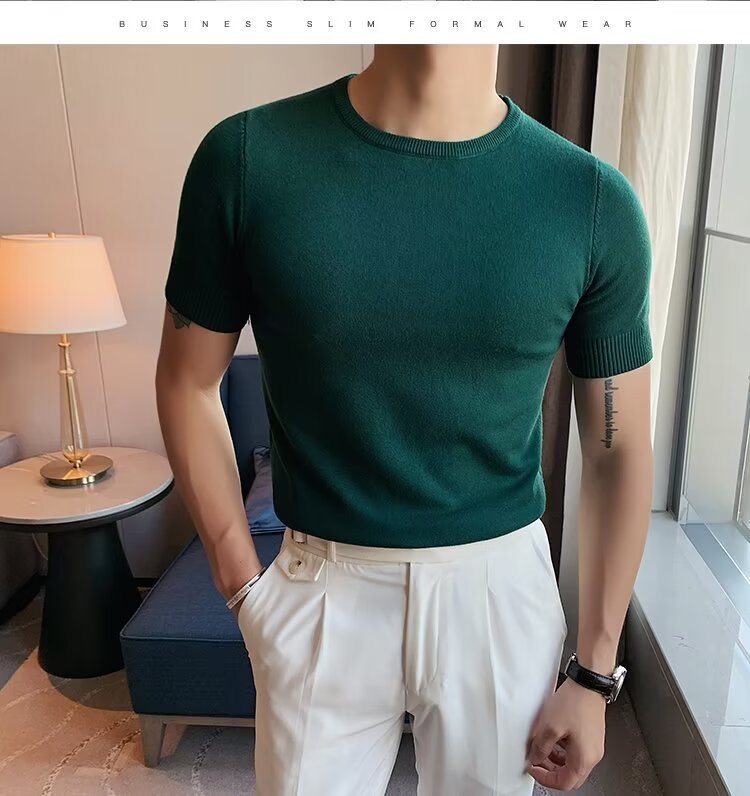 반팔 스웨터 남성용 반팔 티셔츠 2025 신상 하프 터틀넥 이너웨어 남성용 봄 미드 칼라 니트 바닥 셔츠