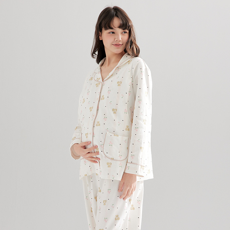 산후복, 사계절 니트 면 임산부 잠옷, 수유 잠옷, 봄 여름 산모 수유 홈웨어, 여름 거즈