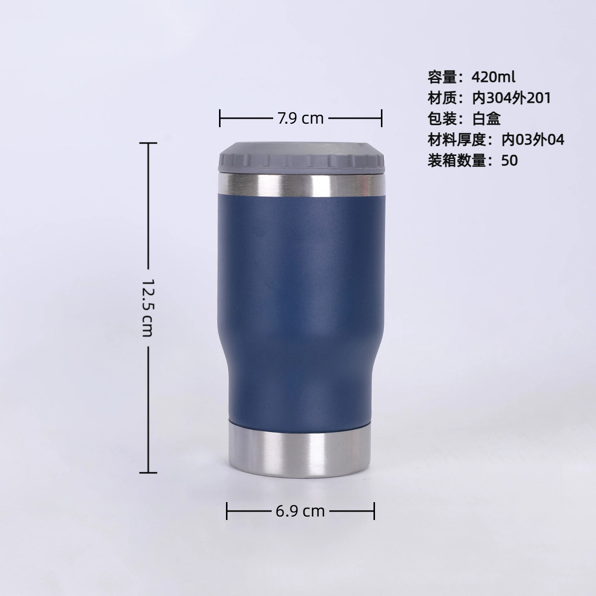 국경 간 진공 스테인레스 스틸 콜드 캐노스 14oz 병따개가있는 이중 뚜껑 맥주 컵 야외 자동차 콜드 캐노스 컵