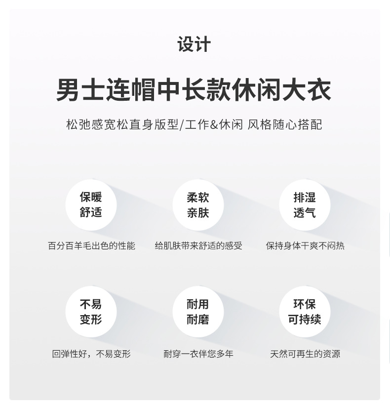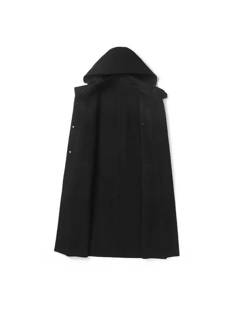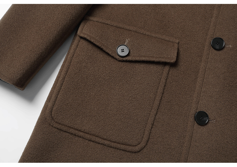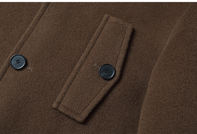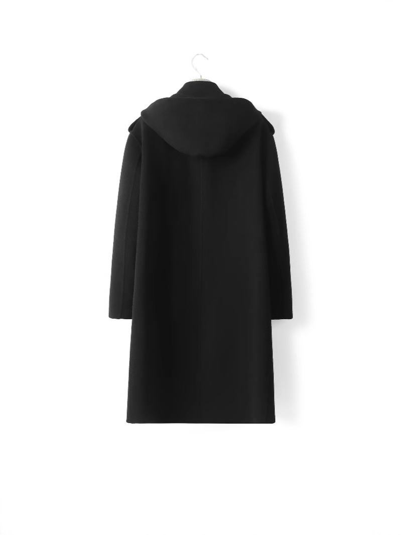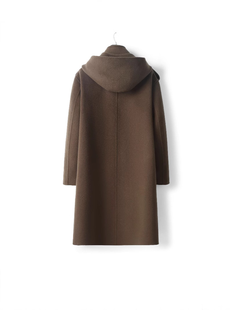 100% 순모 양면 모직 코트 남성용 롱 후드 한국 스타일 캐시미어 없는 모직 코트 트렌디한 중간 길이
