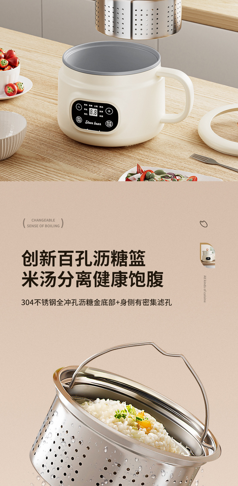 공장 직접 공급 스티치 밥솥 배수 바구니 기숙사 소형 전기 밥솥 다기능 식품 보충제 올인원 전기 밥솥