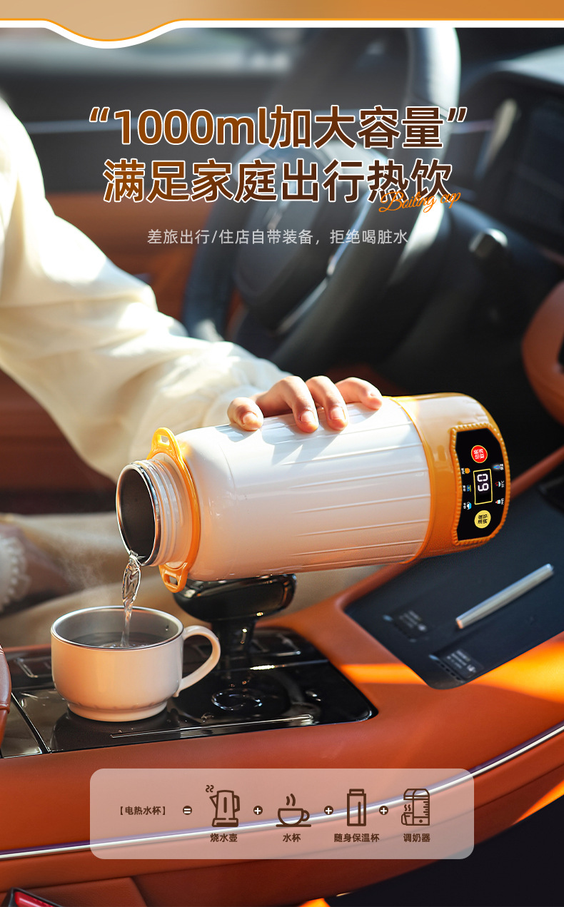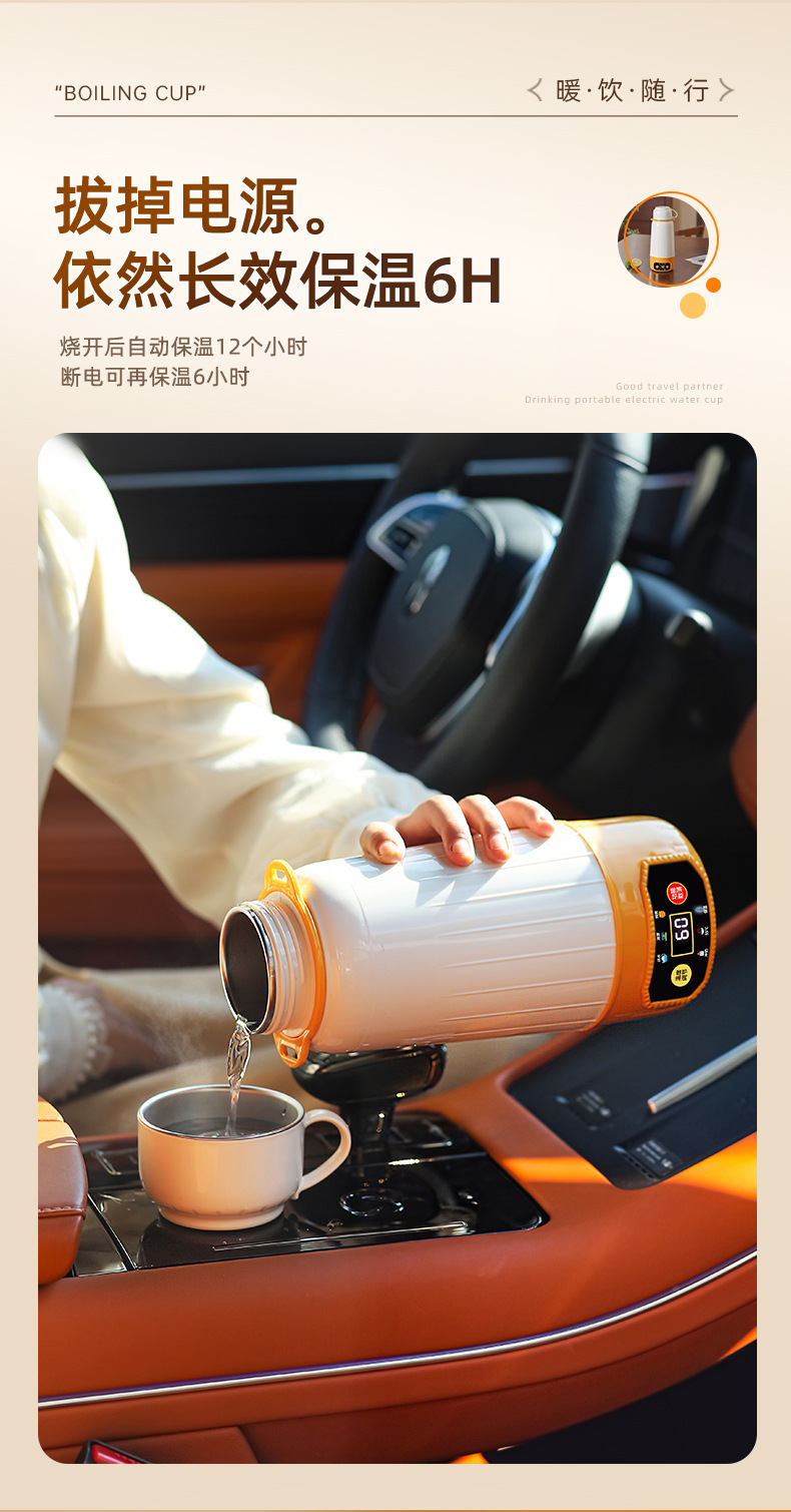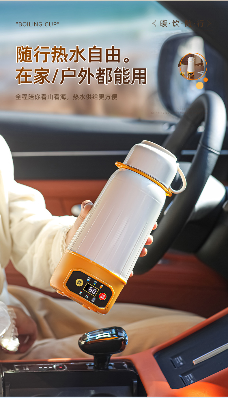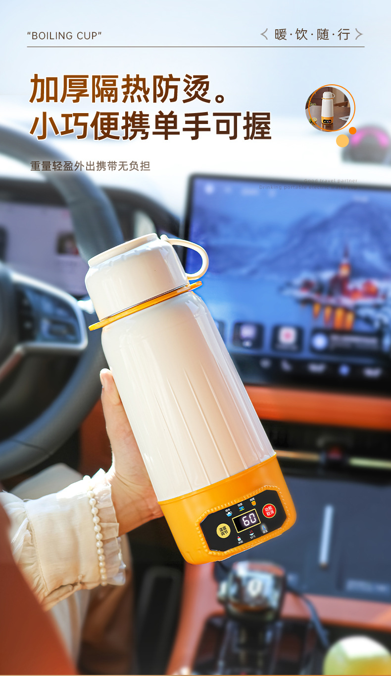 전기 가열 물 컵 진공 다기능 휴대용 자동차 여행 가열 절연 컵 물 컵 지능형 항온 야외