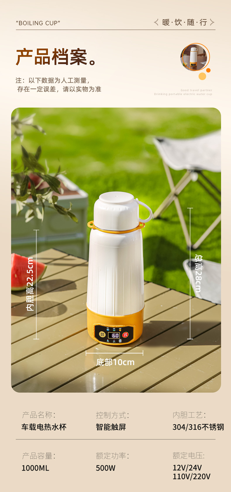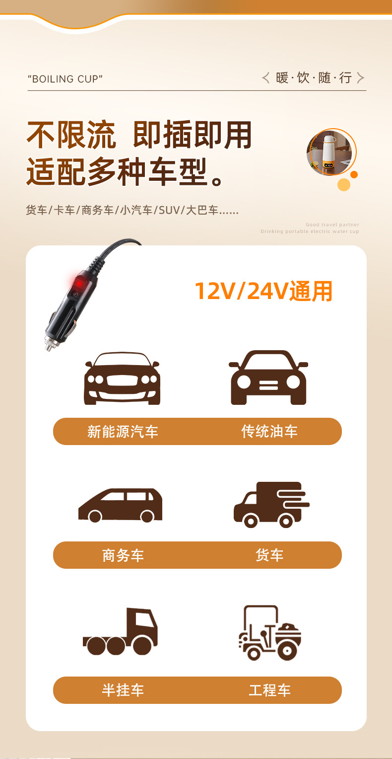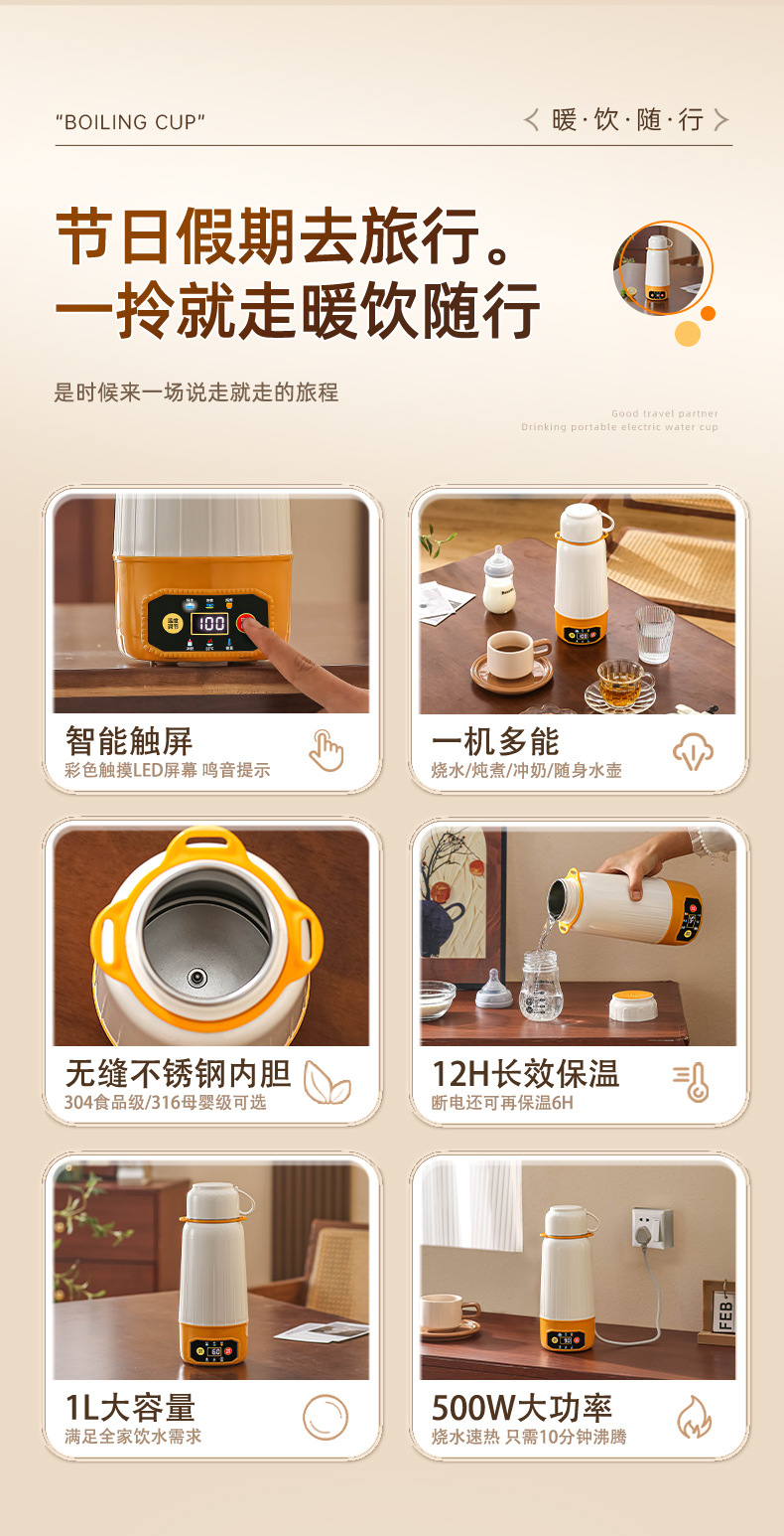 전기 가열 물 컵 진공 다기능 휴대용 자동차 여행 가열 절연 컵 물 컵 지능형 항온 야외