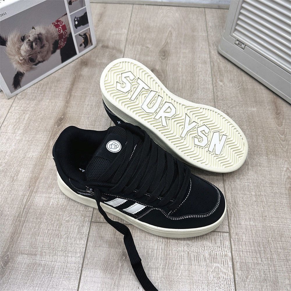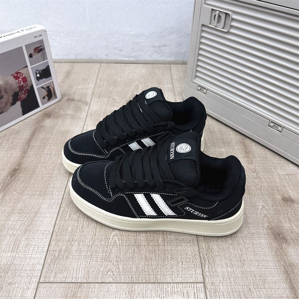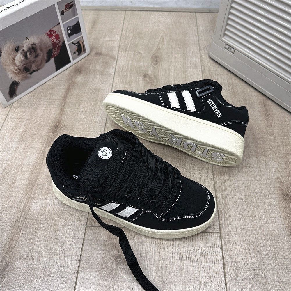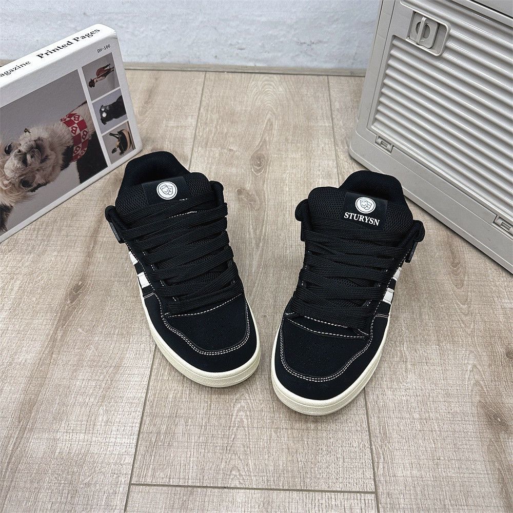 2025 봄 신입생 커플 매트 블랙 빵 신발 남성 홍콩 스타일 복고풍 틈새 문자 운동화