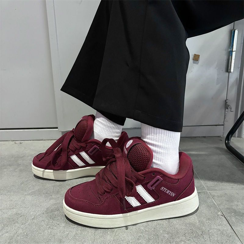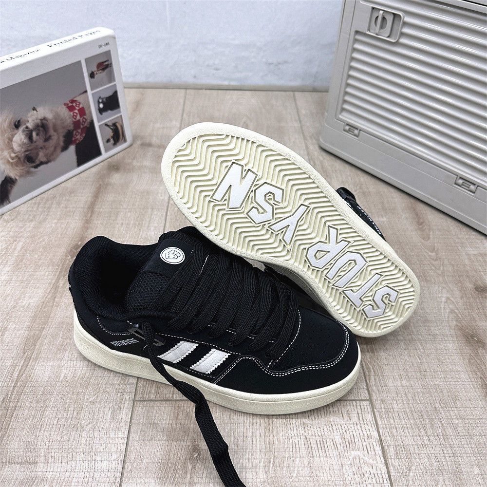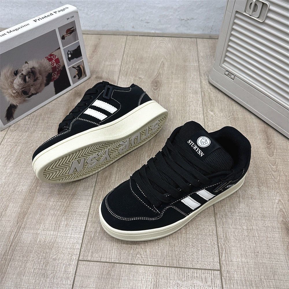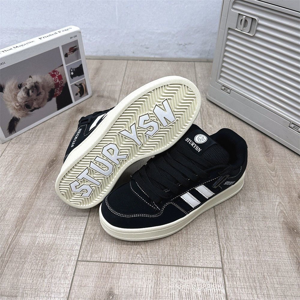 2025 봄 신입생 커플 매트 블랙 빵 신발 남성 홍콩 스타일 복고풍 틈새 문자 운동화