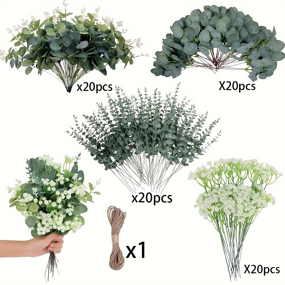 아마존 TEMU 시뮬레이션 유칼립투스 조합 DIY 삽입 가지 잎 Gypsophila 시뮬레이션 꽃 장식 국경