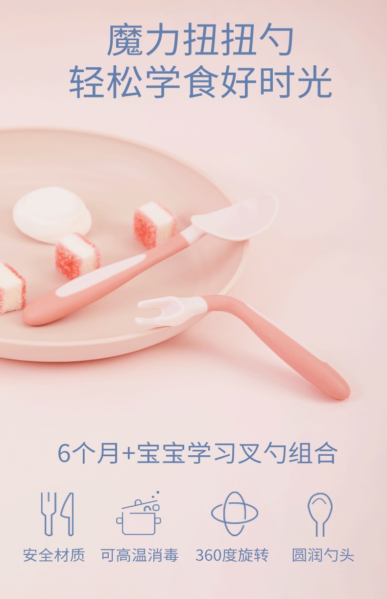 아기 트위스트 트레이닝 포크와 스푼 세트 어린이 휴대용 식품 보충제 수유 식기 재고 특별 가격