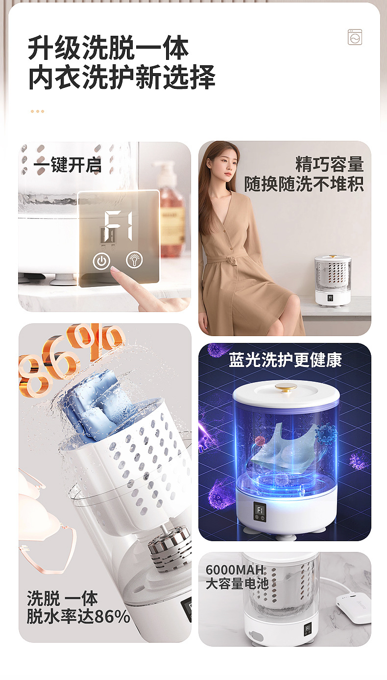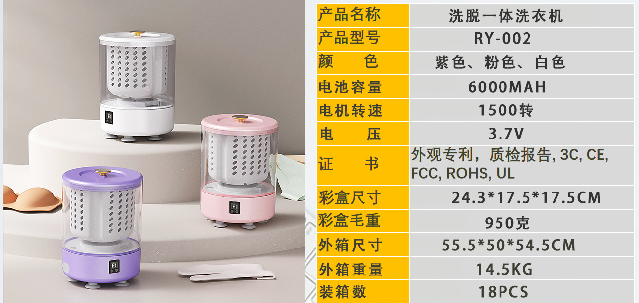 크로스보더 세탁컵 충전식 세탁기 미니 휴대용 속옷 양말 전용 탈수 기능 소형 세탁기