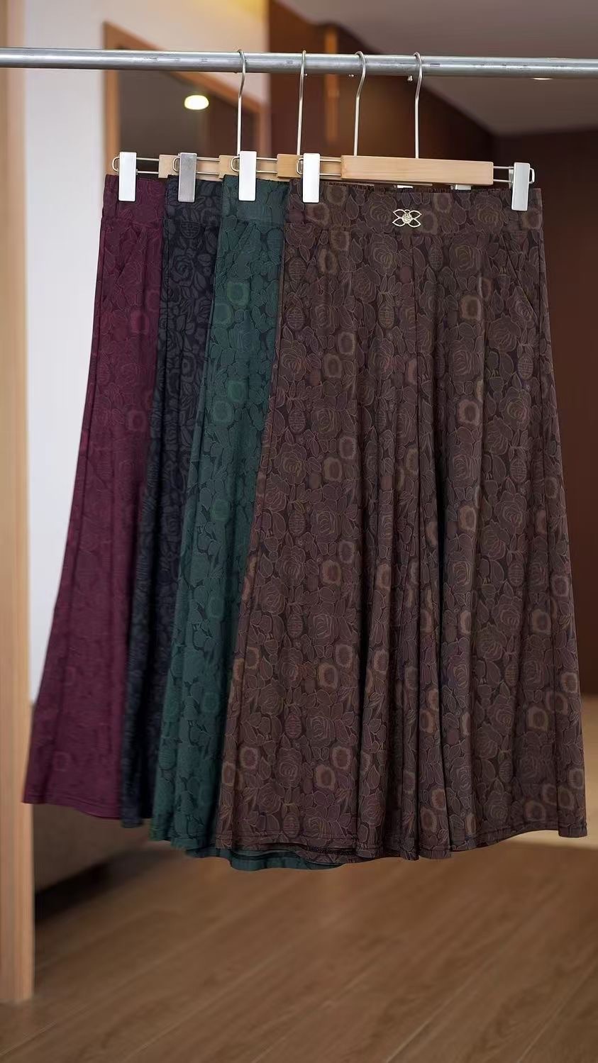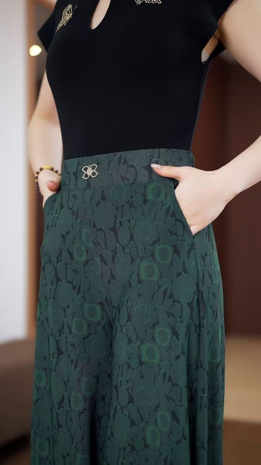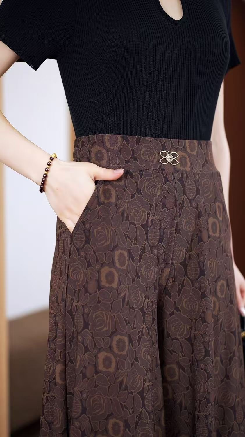 중국풍 8부 와이드 스커트 팬츠 여성용 2026 봄 여름 얇은 루즈핏 하이웨이스트 중년 프린트 캐주얼 스커트 팬츠