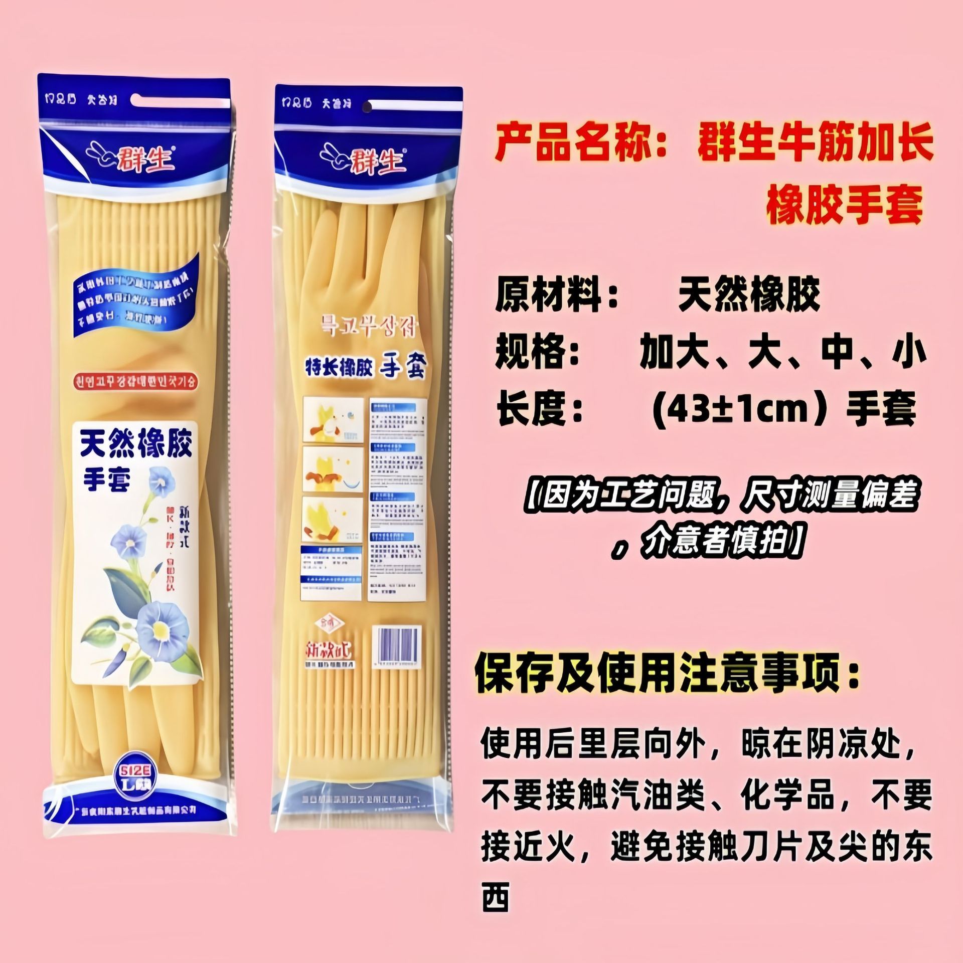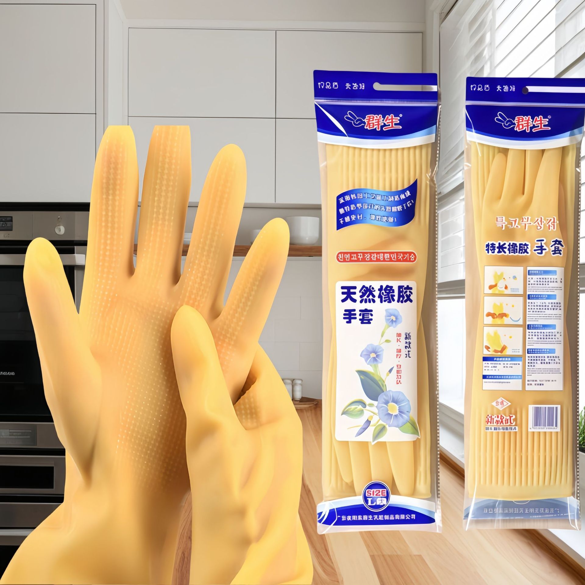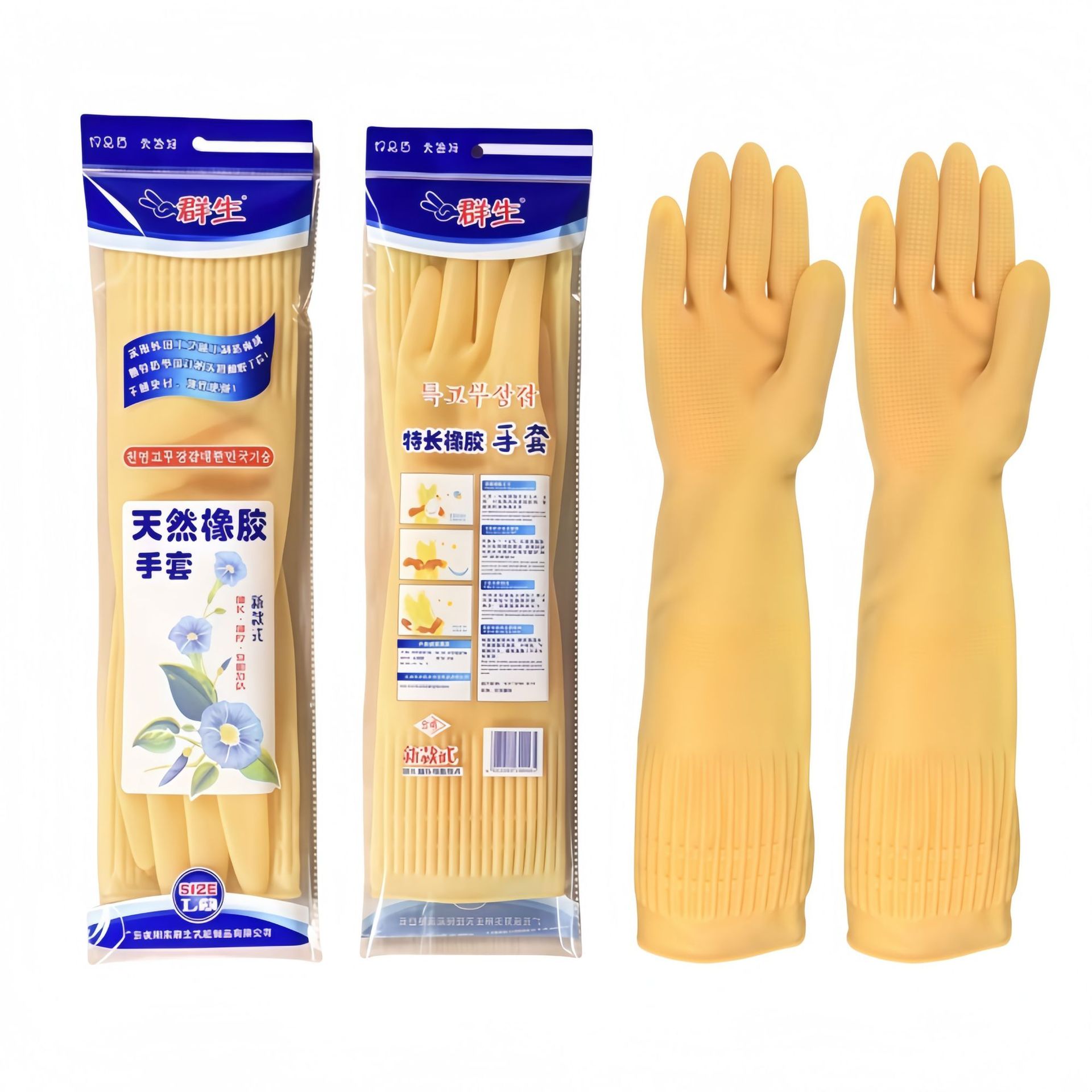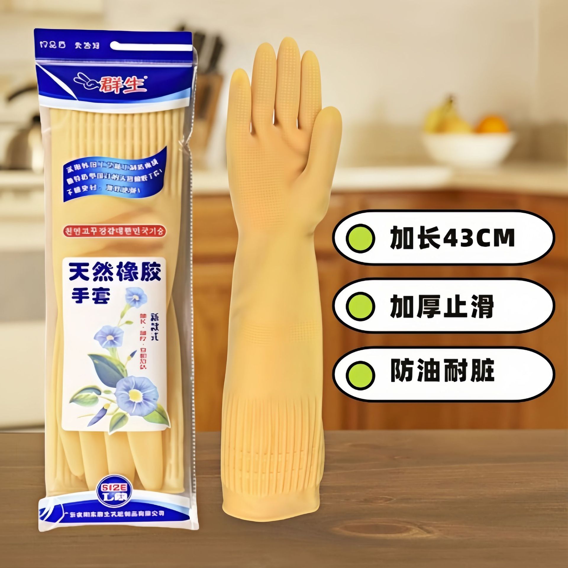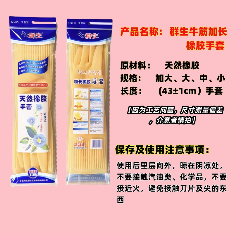 무료배송, 43cm 길이의 두꺼운 가정용 장갑, 주방 방수 장갑, 설거지용 고무장갑, 소가죽장갑