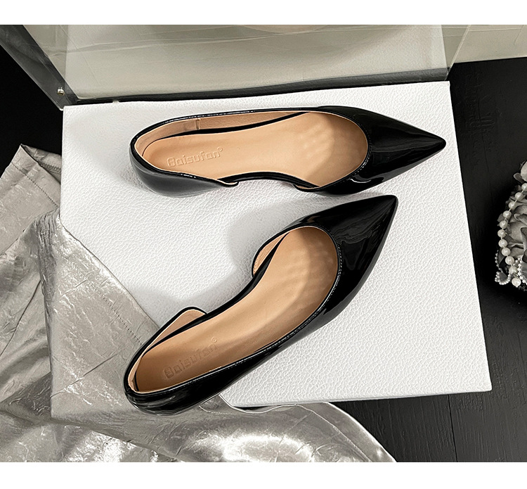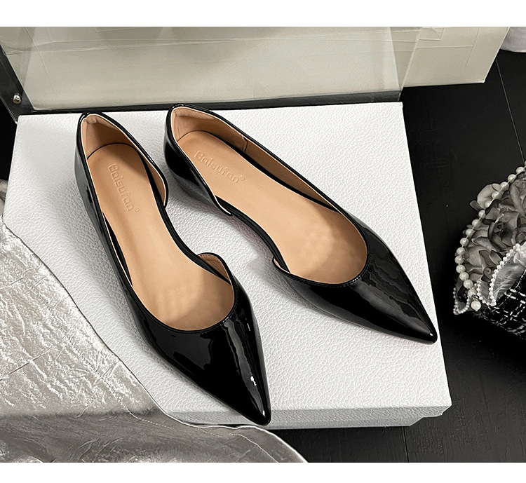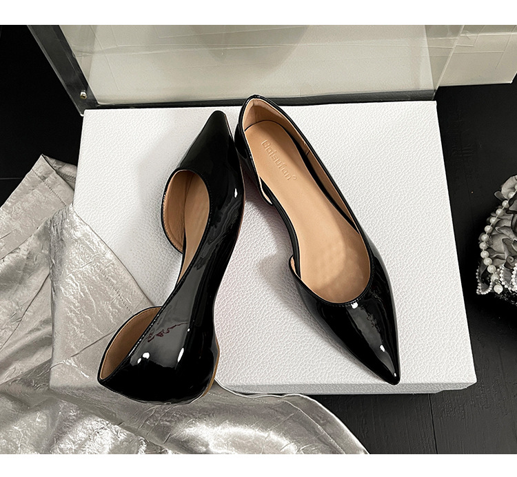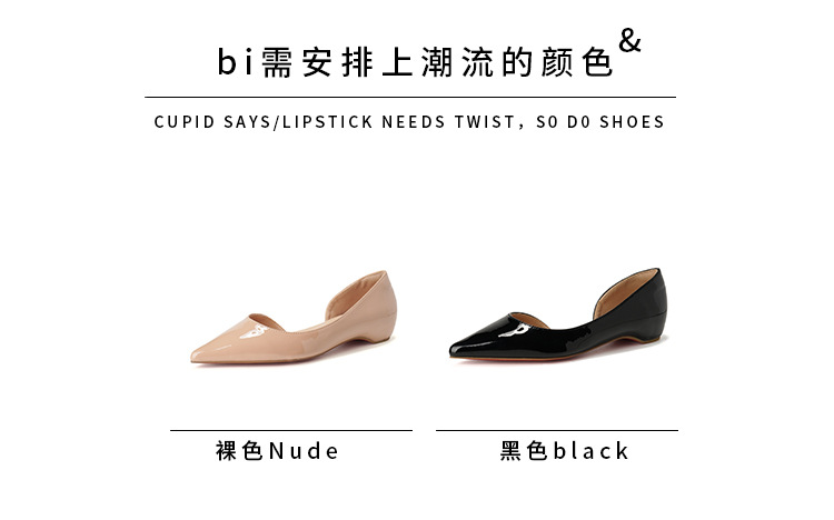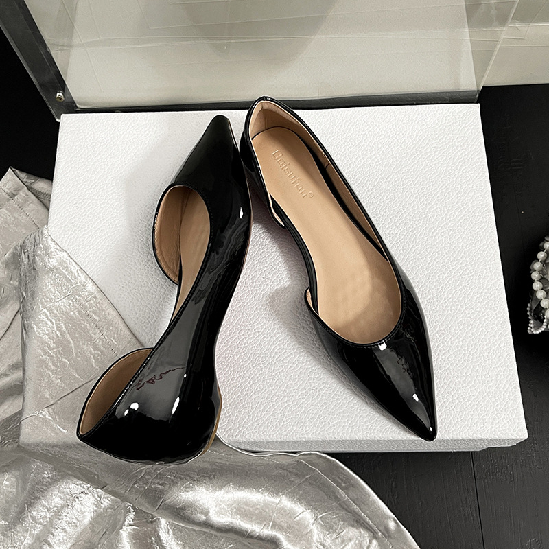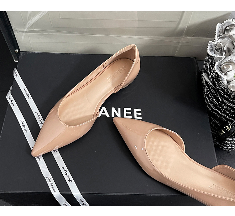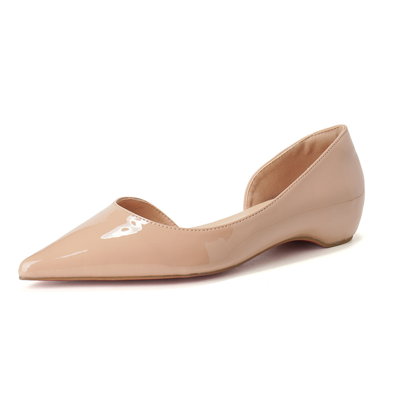 2026년 신상 프렌치 스타일 누드 컬러 키높이 레드솔 포인티드 토 플랫 슈즈 여성용 속이 빈 얕은 입구 통근용 레이커스 가죽 샌들