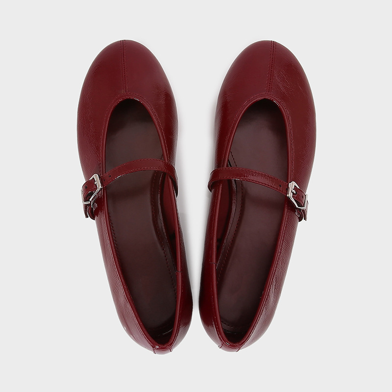 ZA2025 봄 새로운 여성 신발 레드 특허 가죽 효과 발레 플랫 신발 캐주얼 얕은 입 플랫 힐 싱글 신발