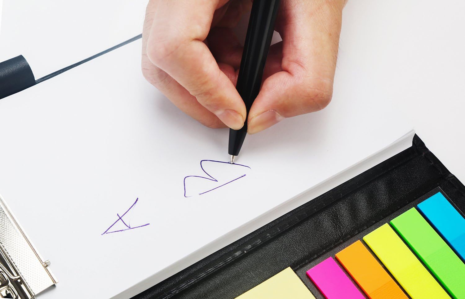 종이책갈피와 PET책갈피는 앞면과 뒷면 모두 원활하게 쓸 수 있습니다. 볼펜과 흰색 필기구의 조합으로 언제 어디서나 기록할 수 있습니다.