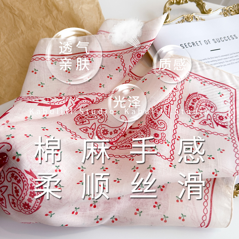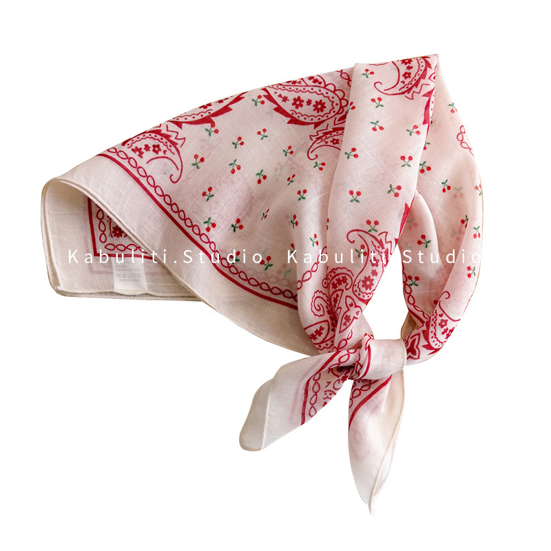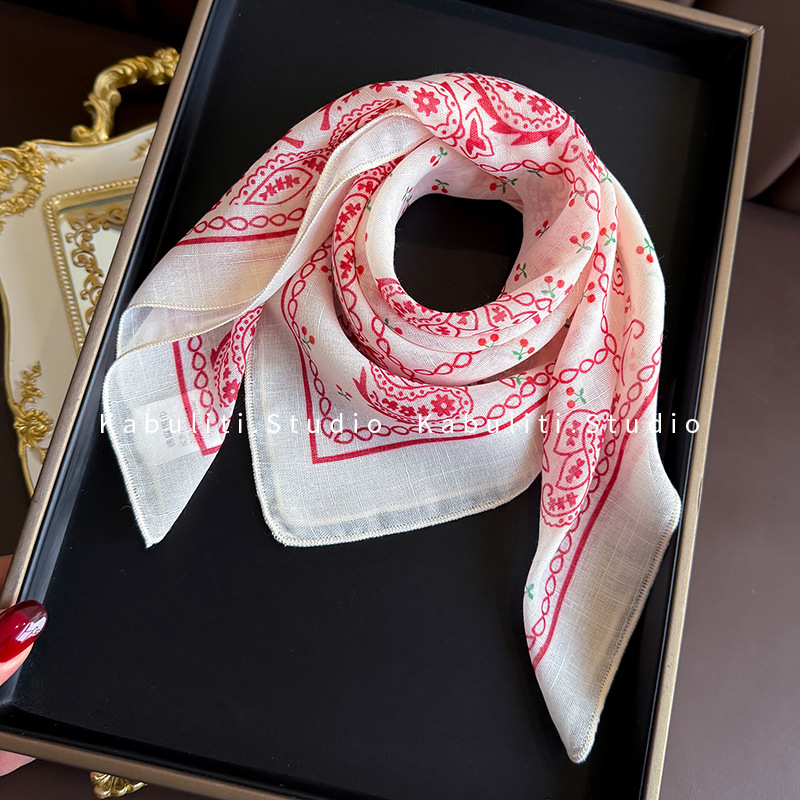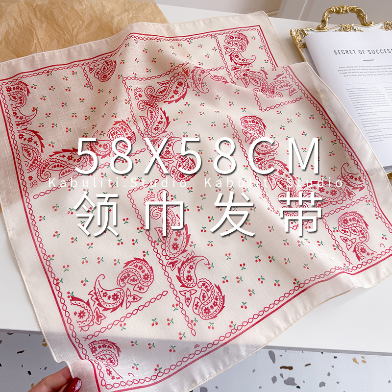58면과 린넨 작은 사각형 스카프 여성 봄, 가을 한국 문학 다목적 패션 기질 스카프 머리띠 장식 스카프
