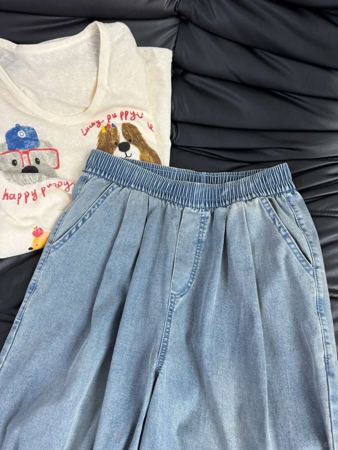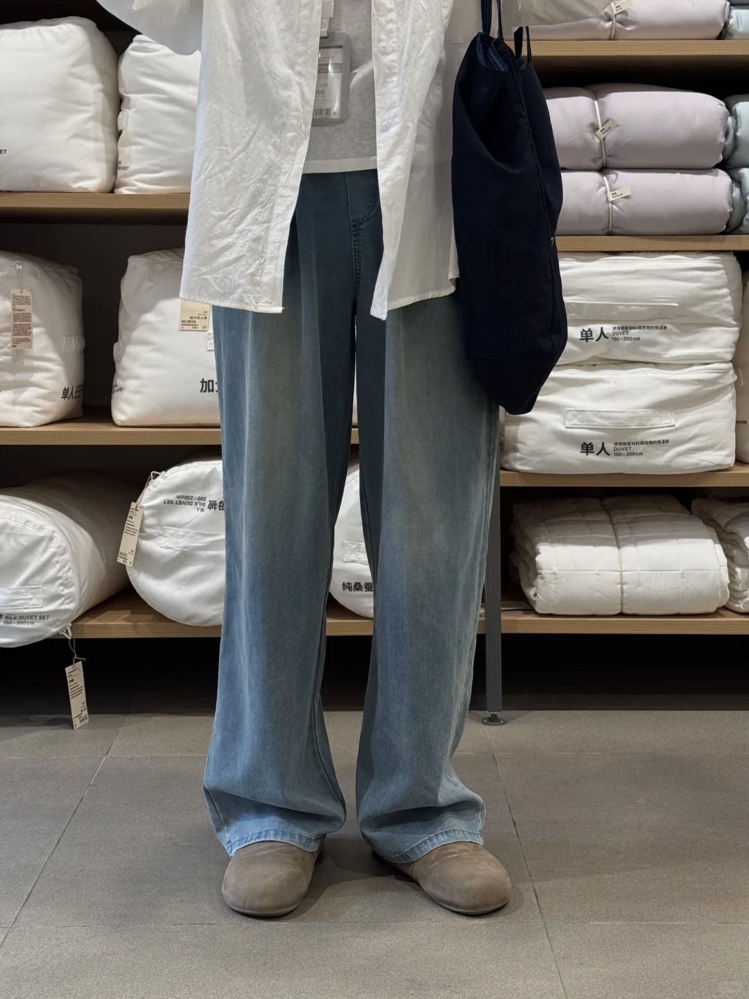 2026년 여름 신상 하이웨이스트 캐주얼 신축성 있는 텐셀 데님 팬츠 여성용 체형을 가려주는 슬리밍 효과의 와이드 레그 야마모토 스타일 롱 팬츠