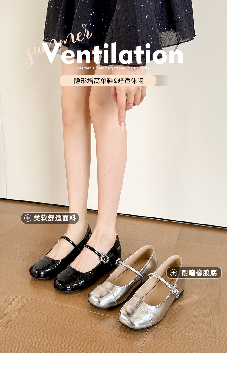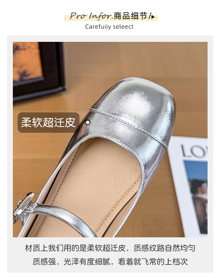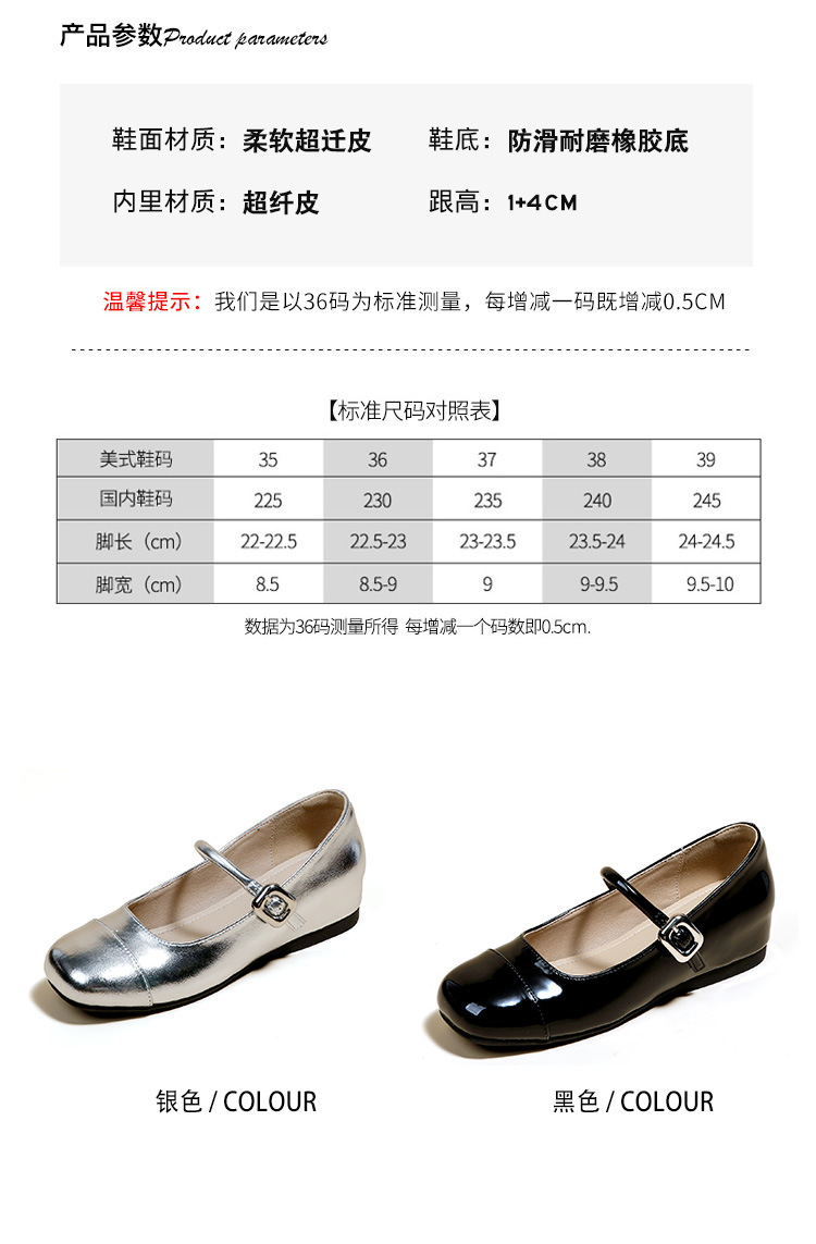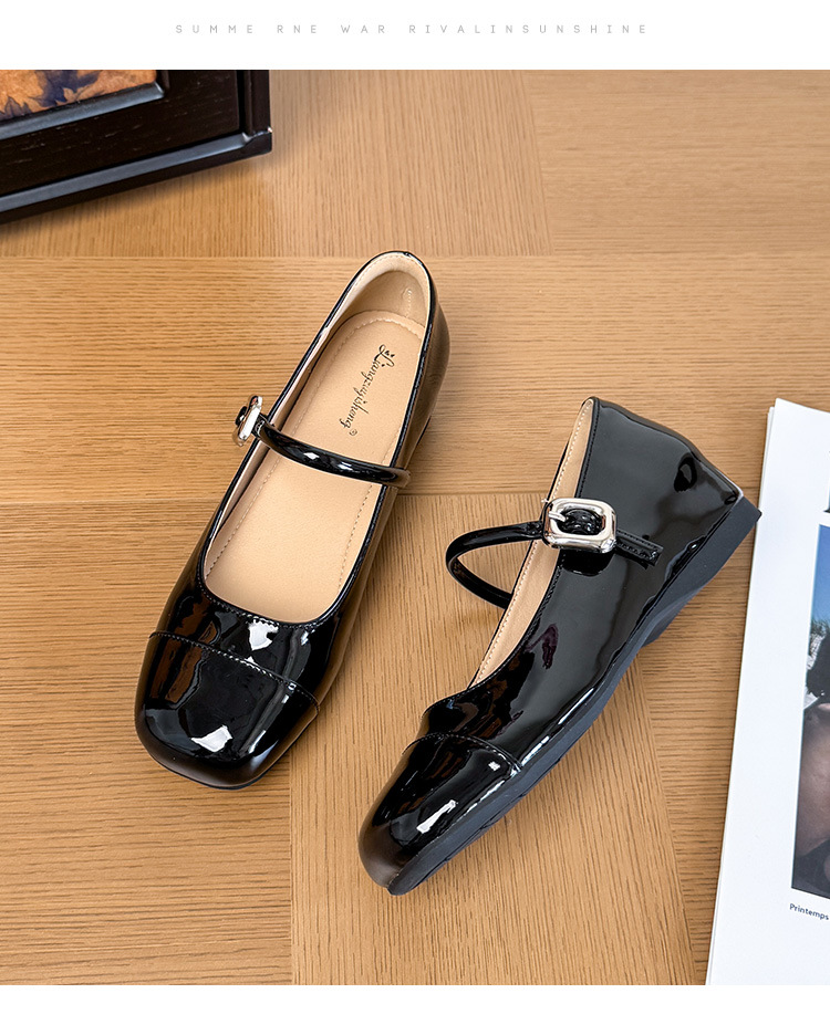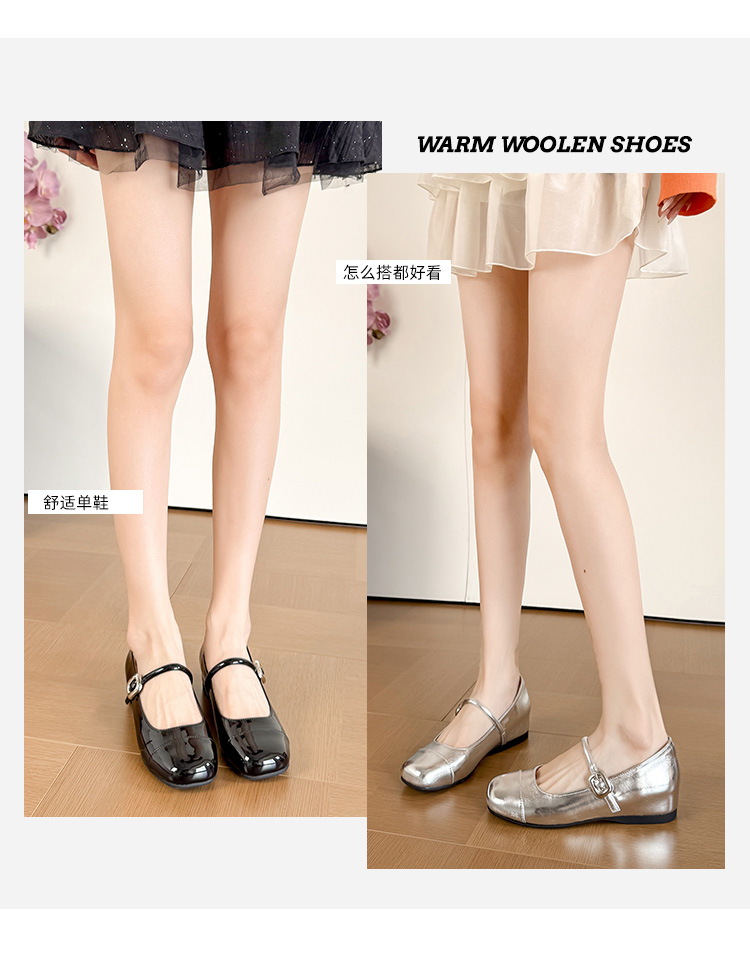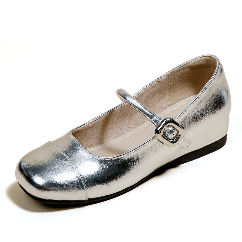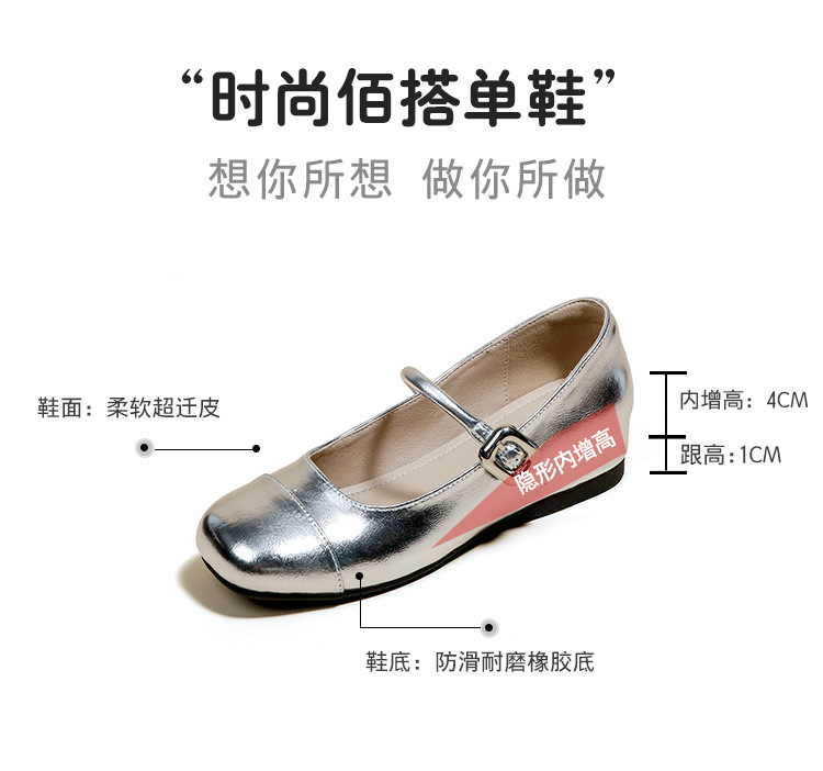 내부 높이 프랑스 빈티지 메리 제인 신발 여성 봄 새 라운드 발가락 얕은 입 발레 실버 쐐기 특허 가죽 신발