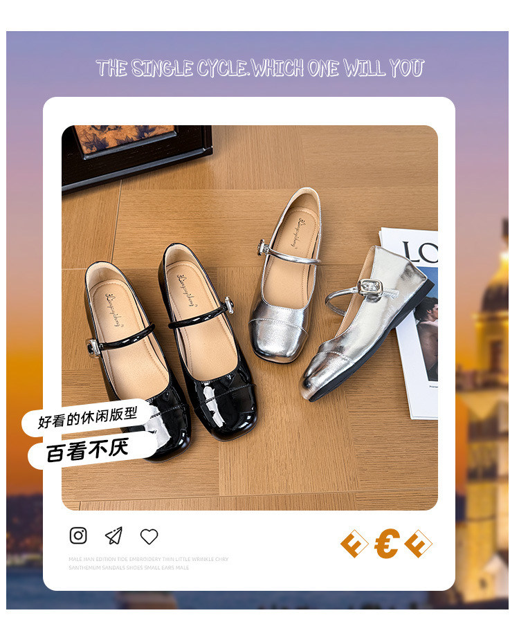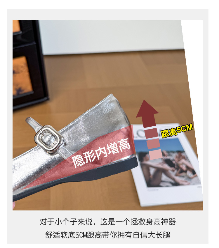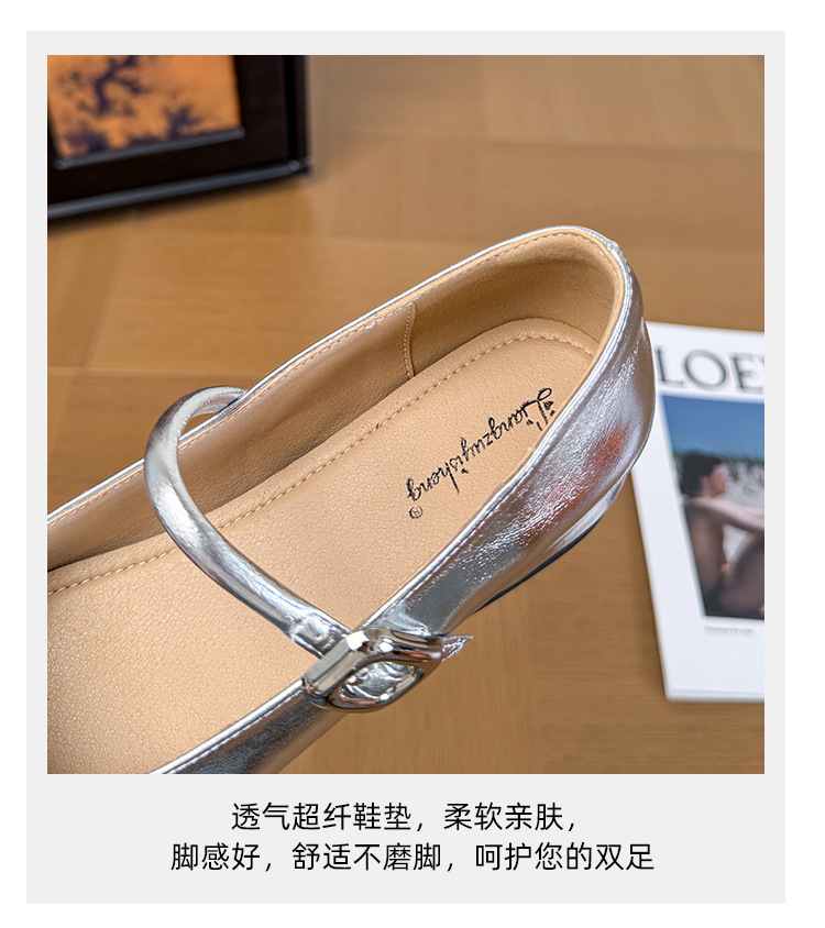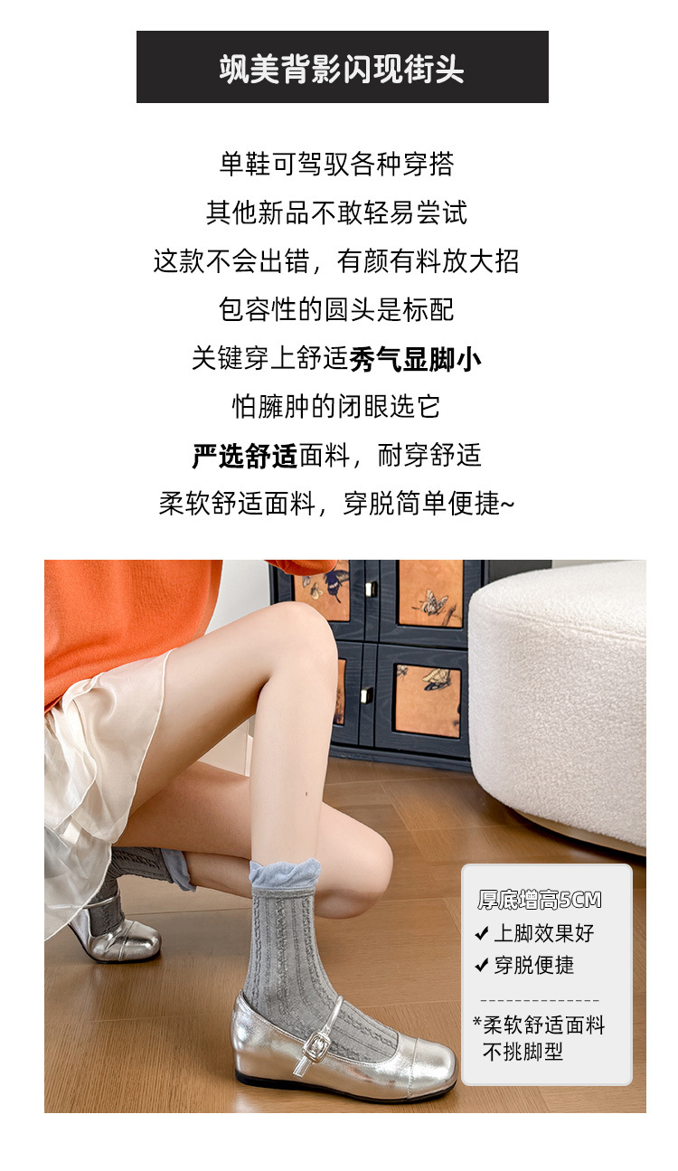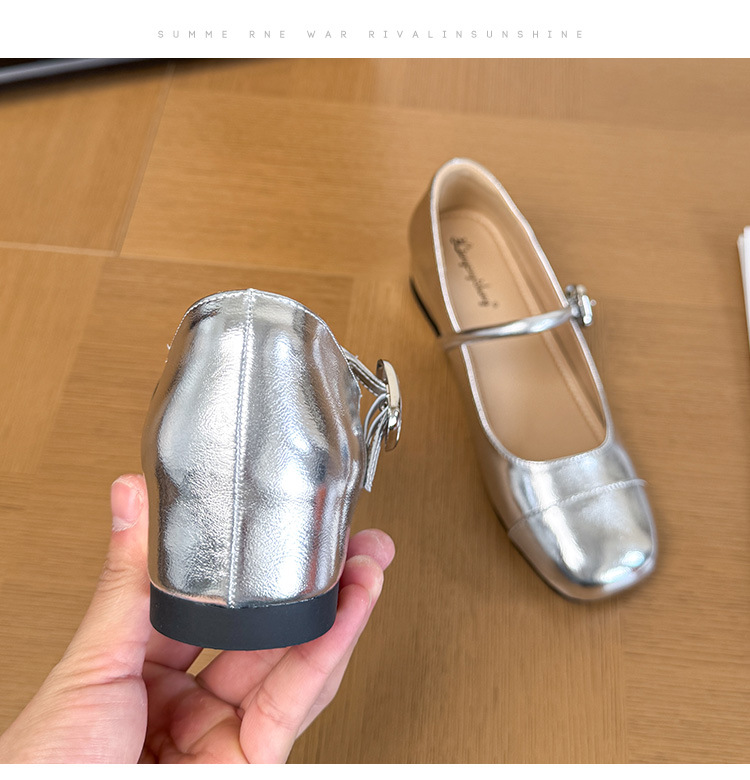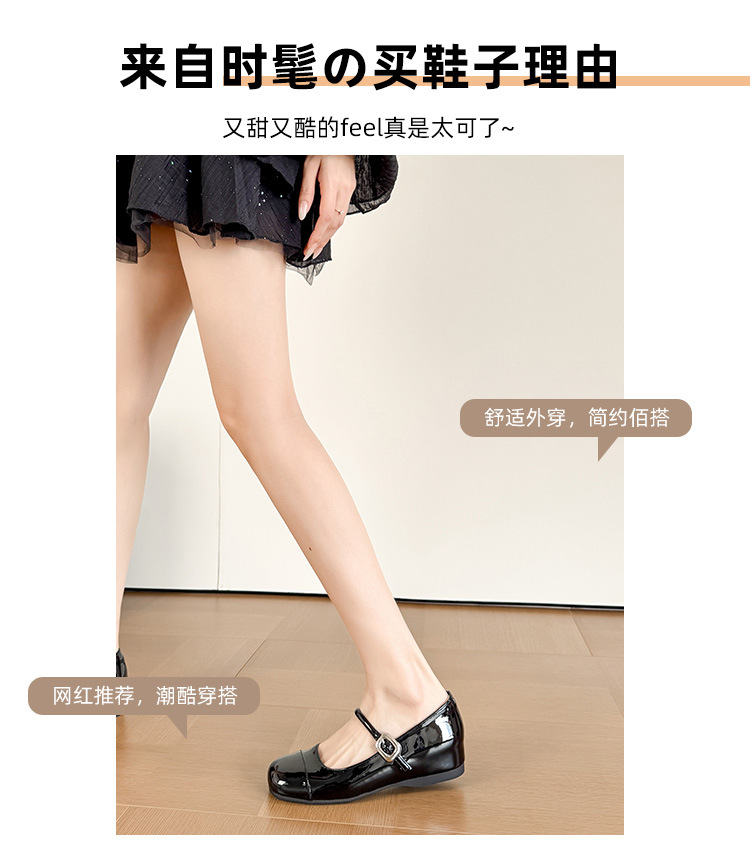 내부 높이 프랑스 빈티지 메리 제인 신발 여성 봄 새 라운드 발가락 얕은 입 발레 실버 쐐기 특허 가죽 신발