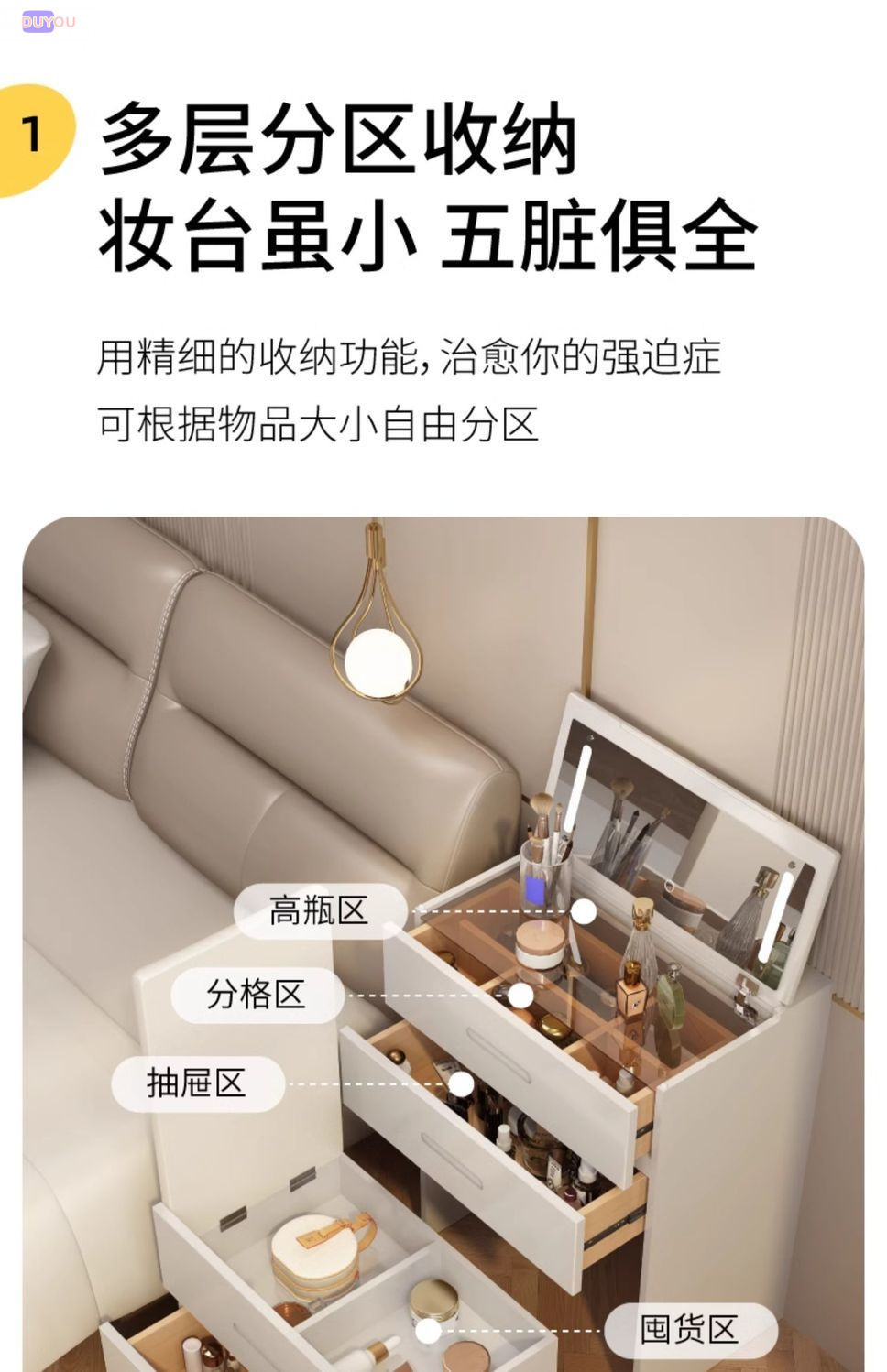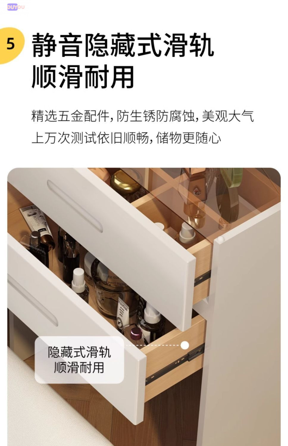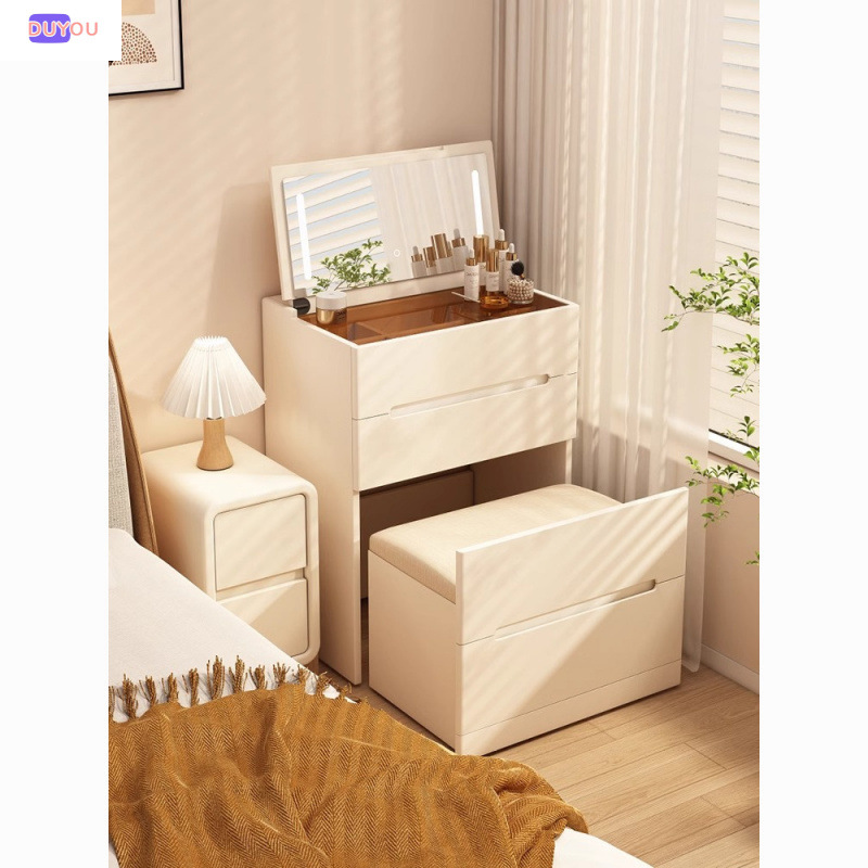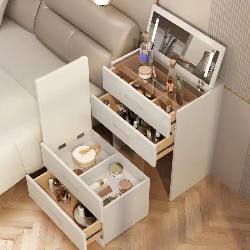 크림 스타일 드레싱 테이블 침대 옆 테이블 다기능 침대 테이블 통합 현대 간단한 드레싱 테이블 침실 보관 캐비닛
