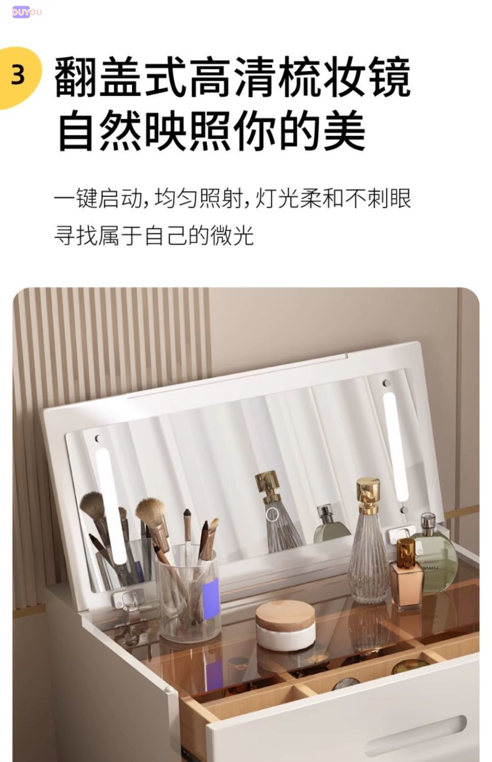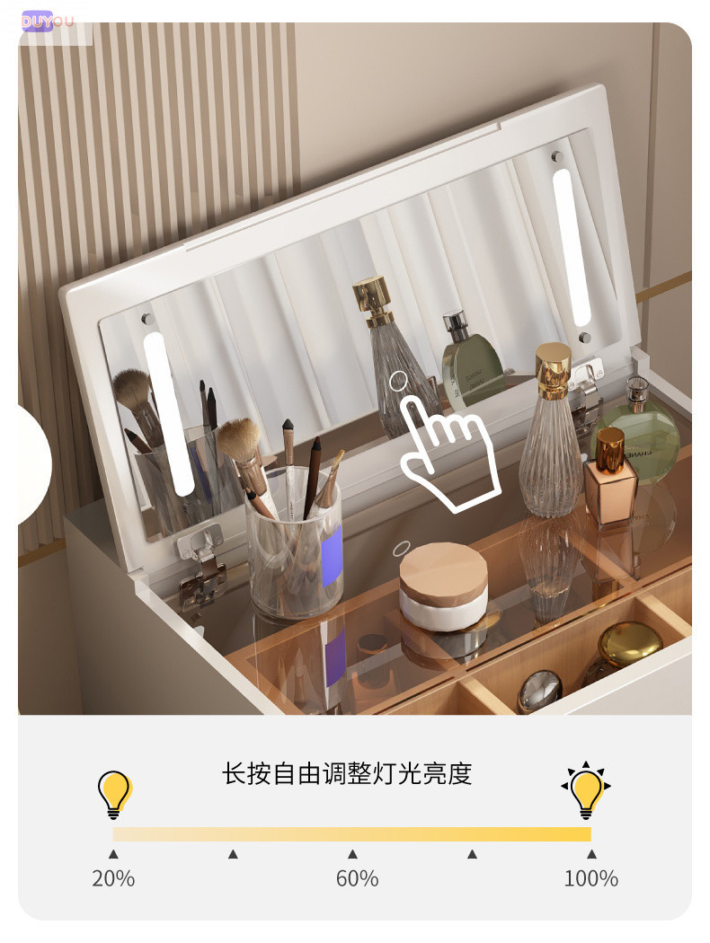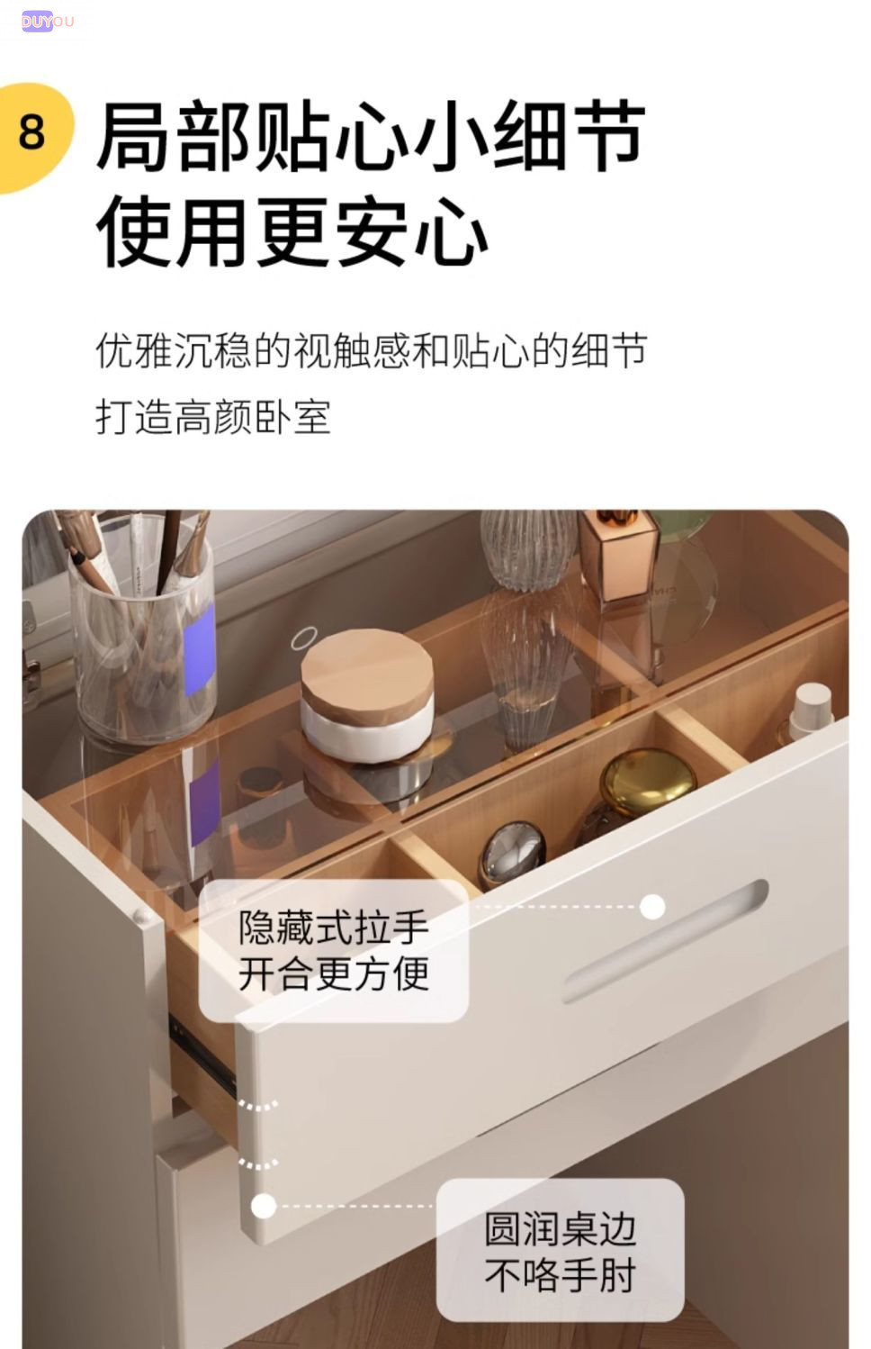 크림 스타일 드레싱 테이블 침대 옆 테이블 다기능 침대 테이블 통합 현대 간단한 드레싱 테이블 침실 보관 캐비닛