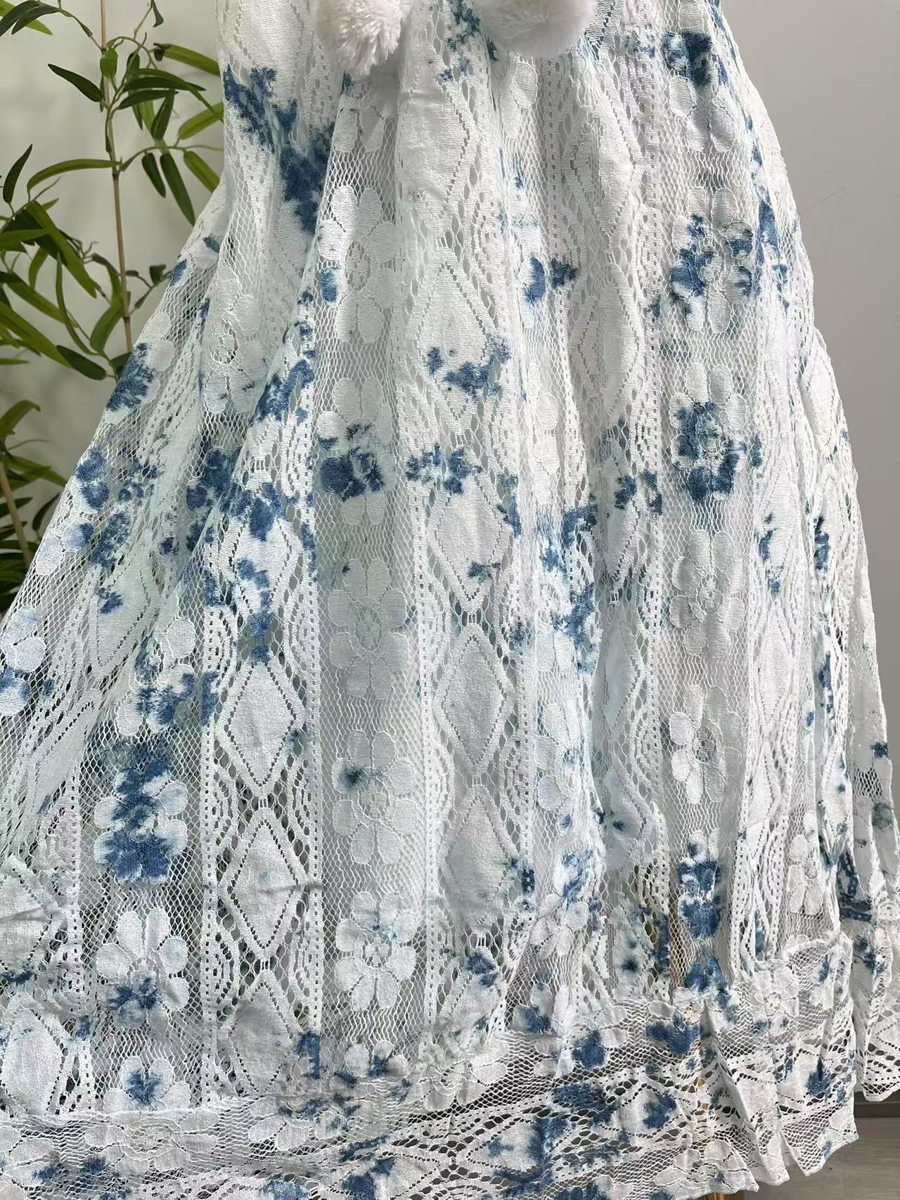 운남 다리 타이 염색 드레스 타이 염색 서스펜더 스커트 블루 염색 드레스 공장 스팟 도매 타이 염색 서스펜더 스커트
