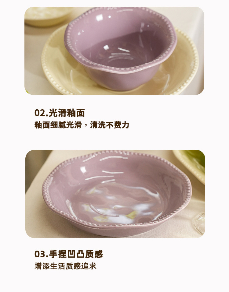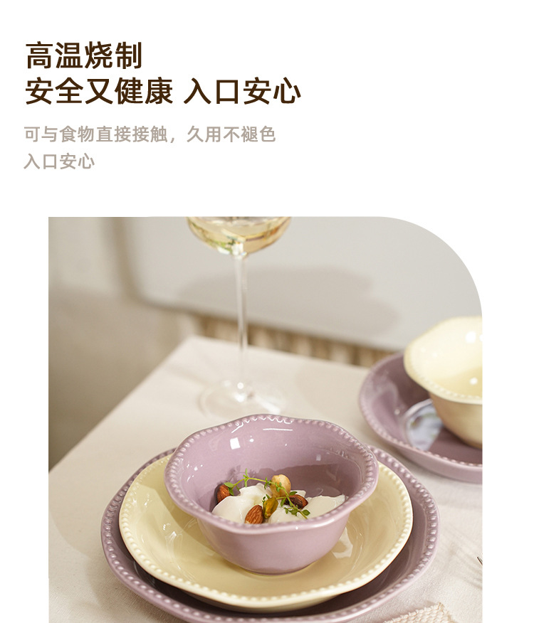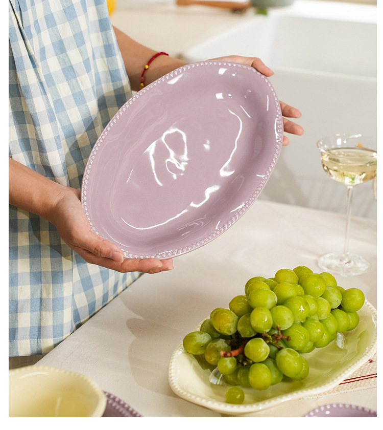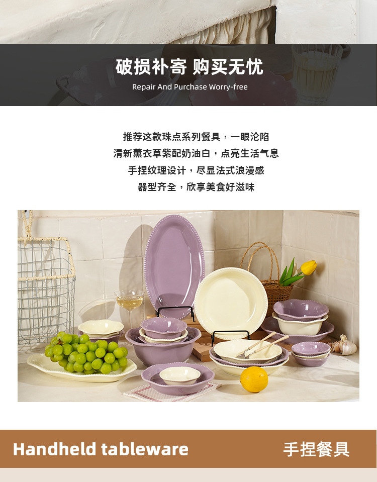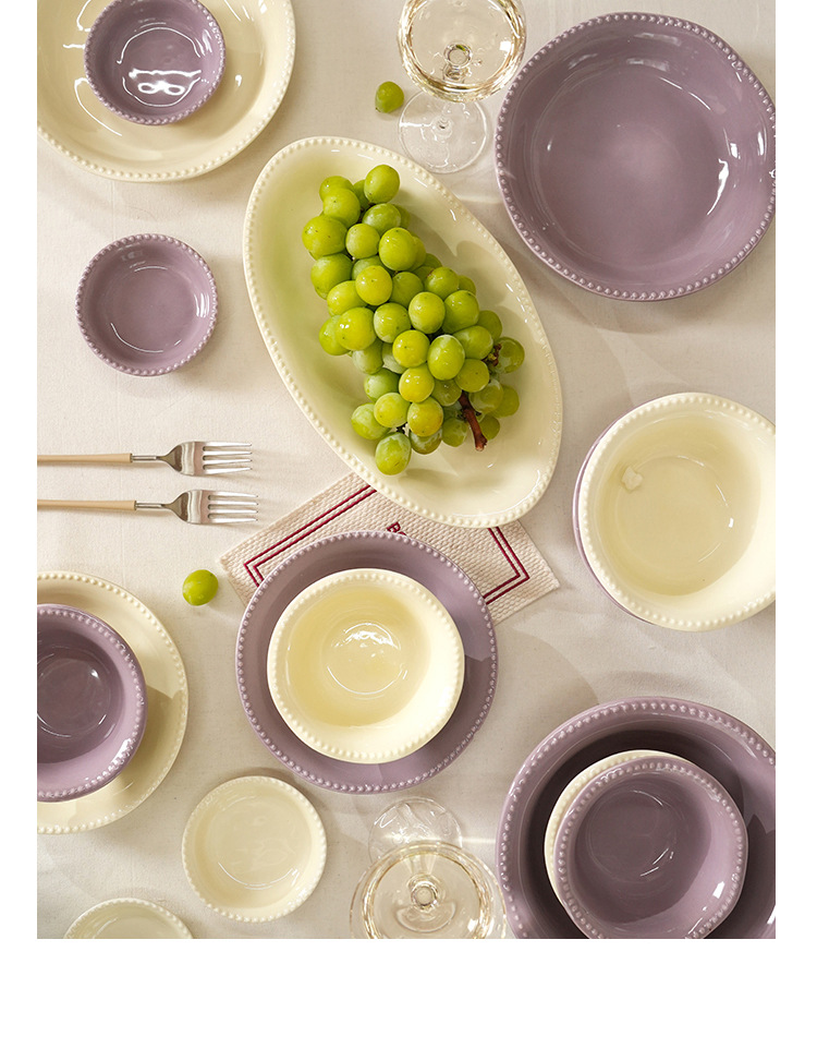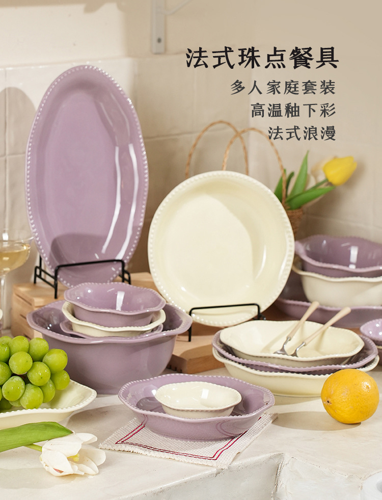 프랑스 심플 세라믹 식기 세트, 창의적인 구슬 점, 고급스러운 가정용 세라믹 밥 그릇, 국수 그릇, 접시, 생선 접시