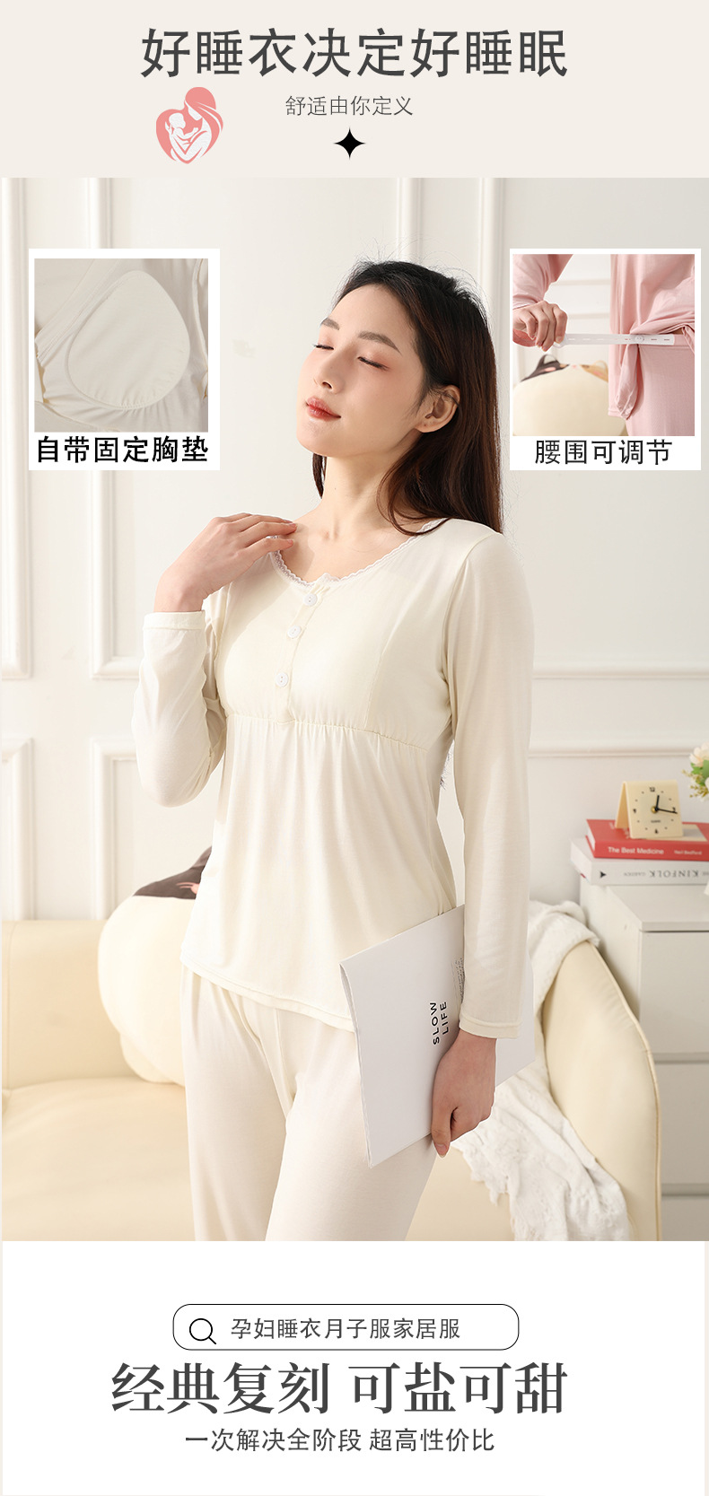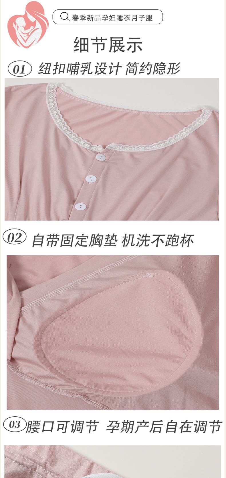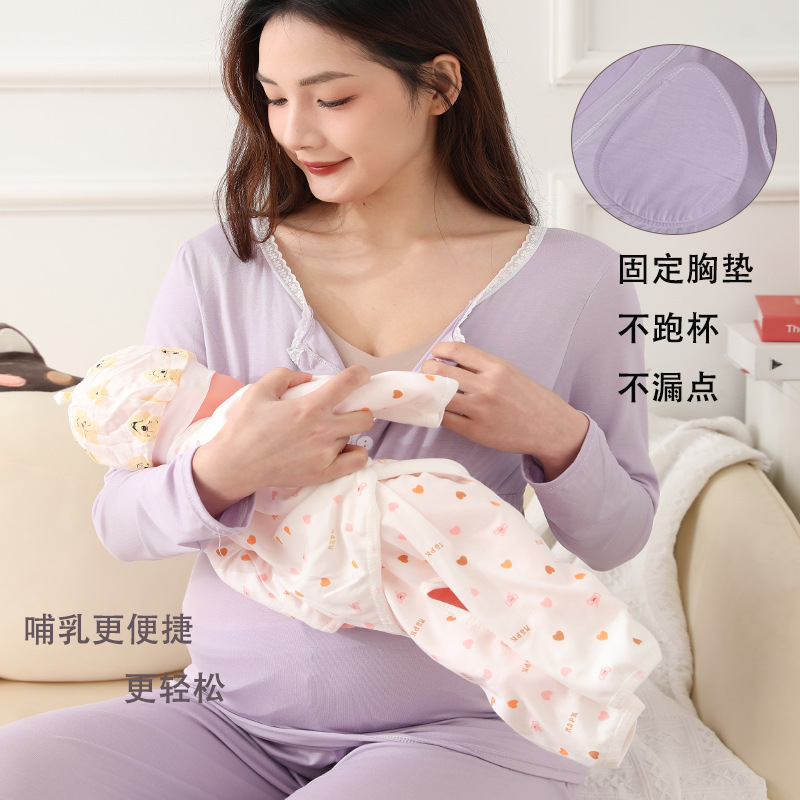 산후복, 임부복, 수유복, 루즈핏 가슴패드 내장 잠옷, 봄가을, 임신 전후, 수유용 홈웨어 세트