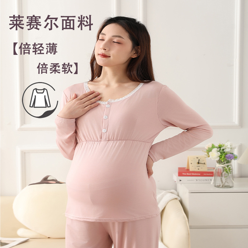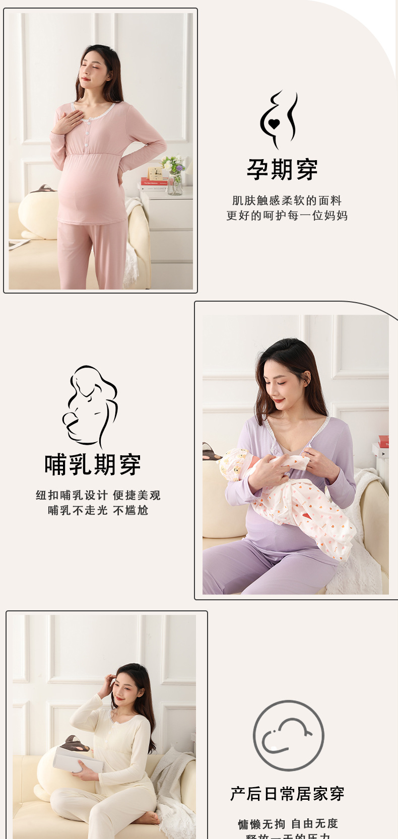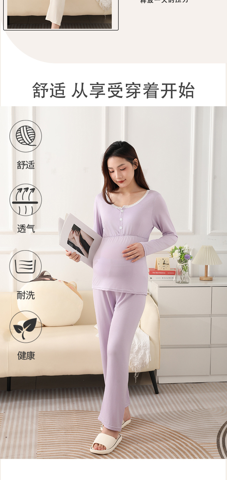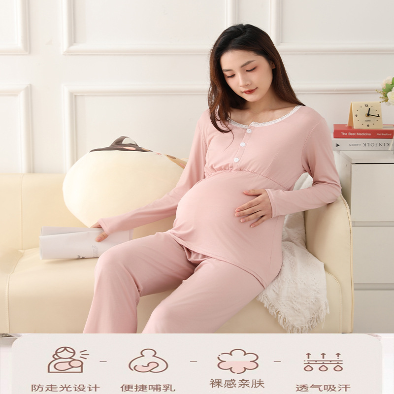 산후복, 임부복, 수유복, 루즈핏 가슴패드 내장 잠옷, 봄가을, 임신 전후, 수유용 홈웨어 세트