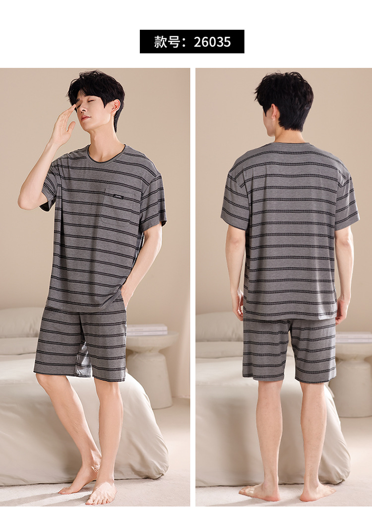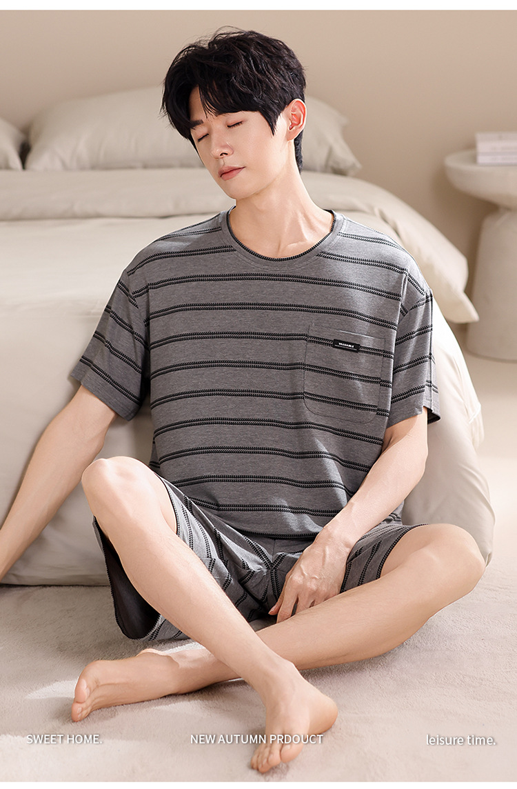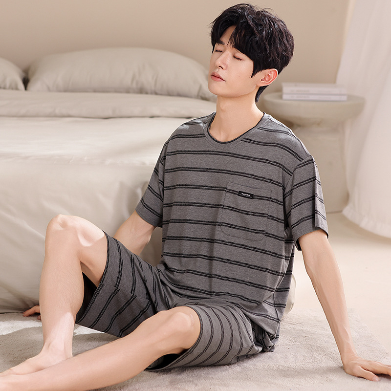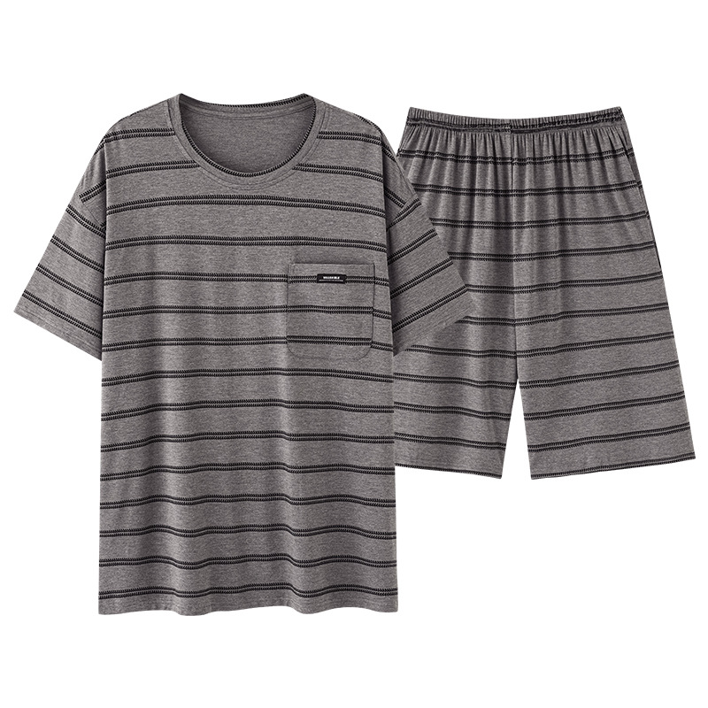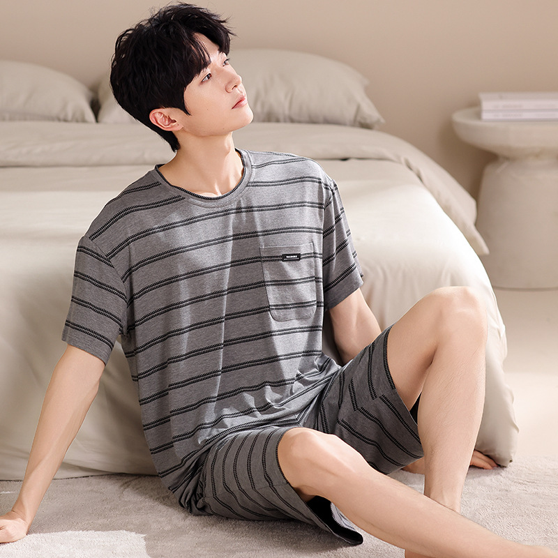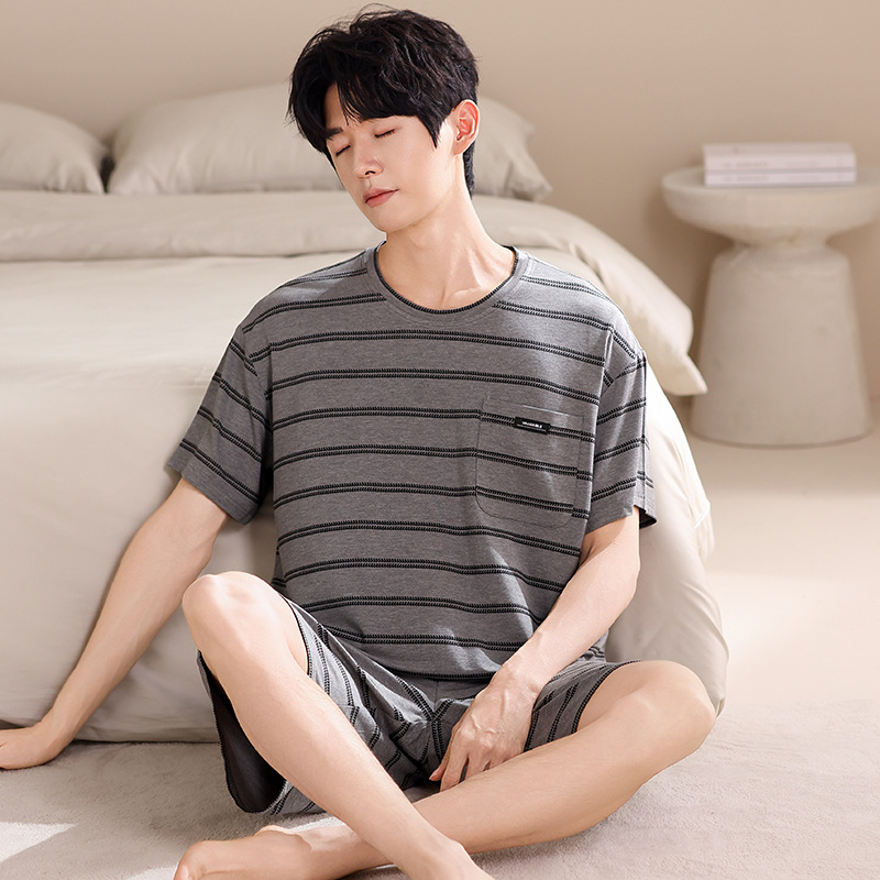 여름용 남아용 모달 잠옷 얇은 반팔 2025 새로운 대형 사이즈는 고급 남성 가정복 외부에 착용 가능