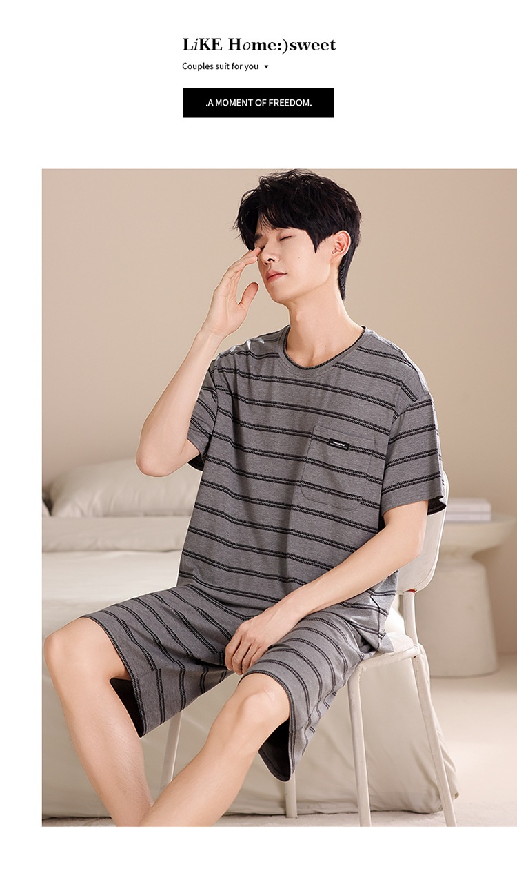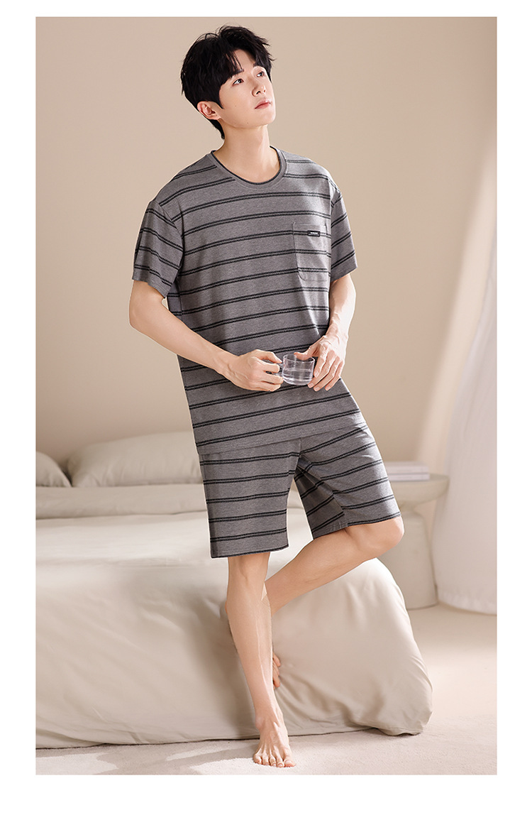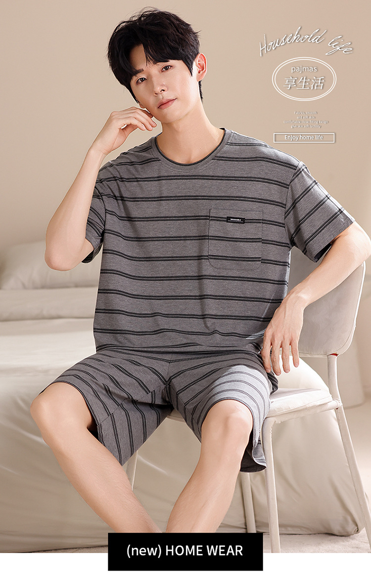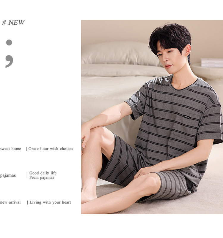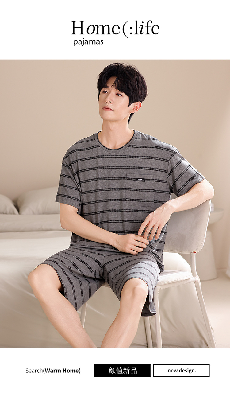 여름용 남아용 모달 잠옷 얇은 반팔 2025 새로운 대형 사이즈는 고급 남성 가정복 외부에 착용 가능