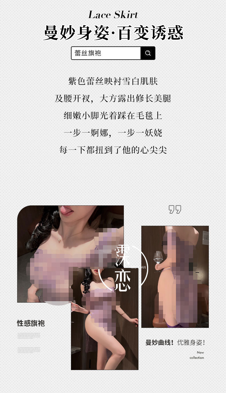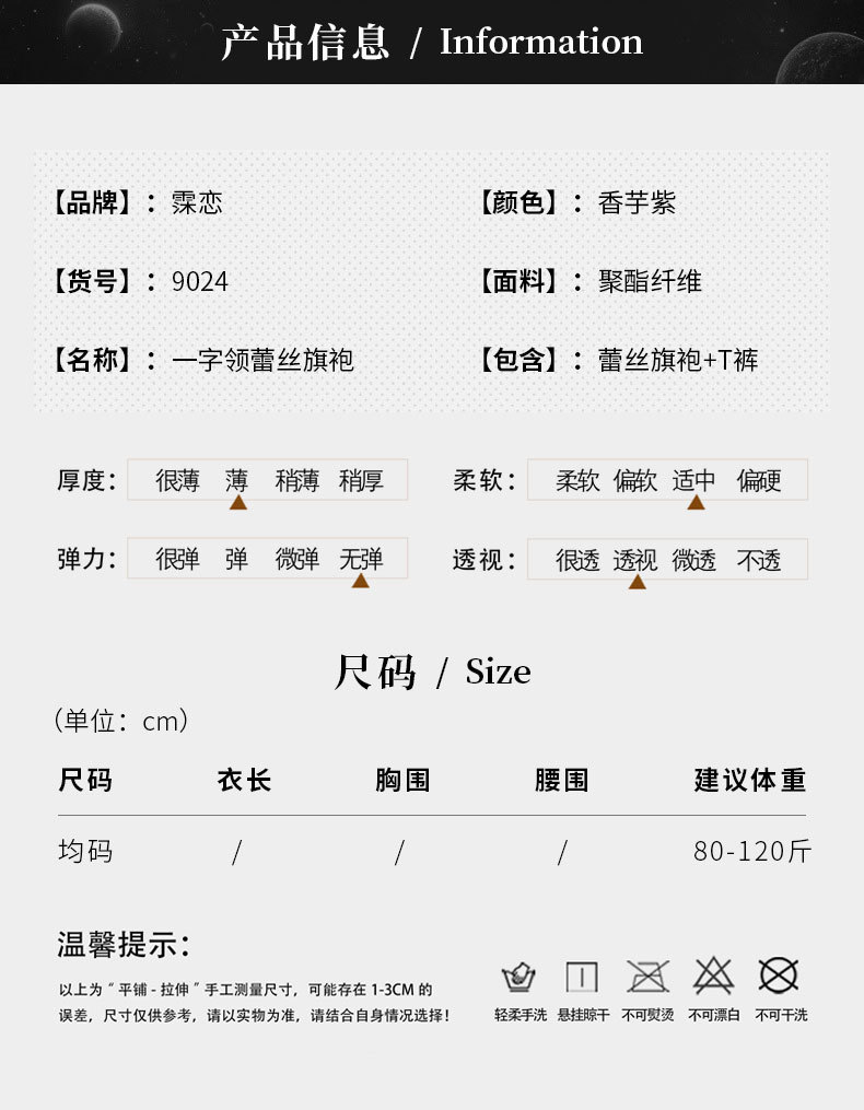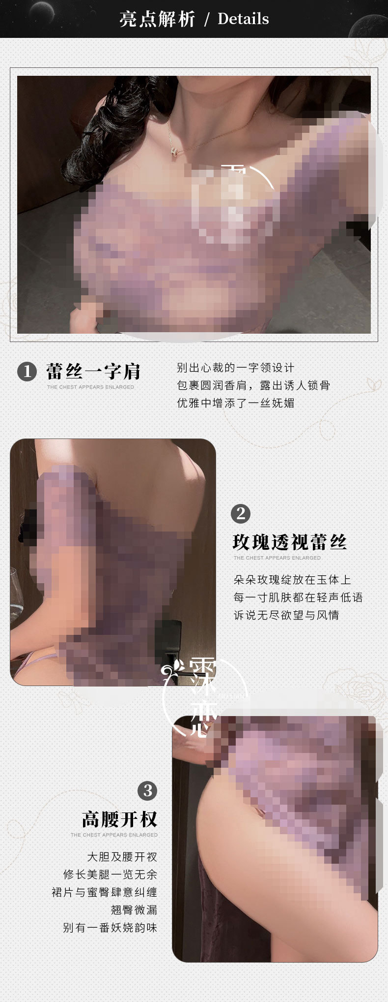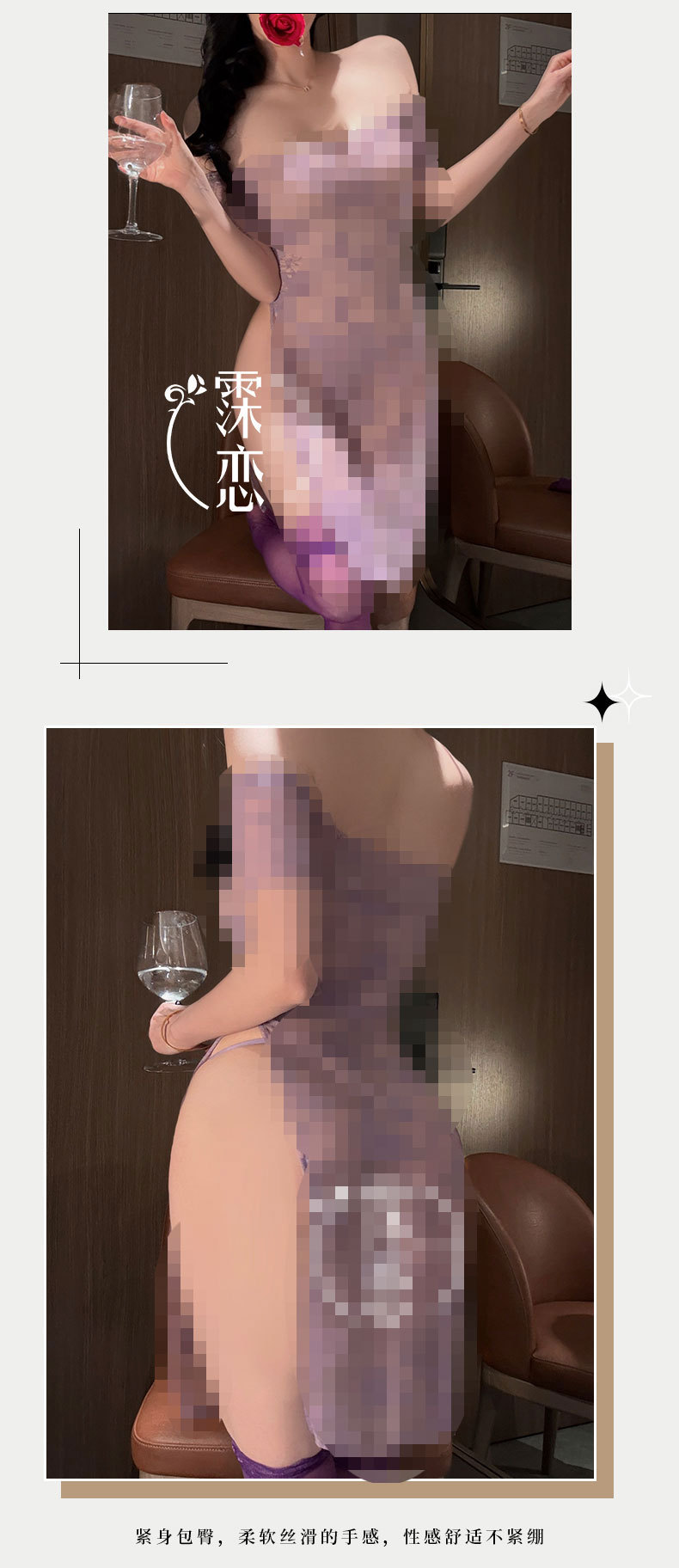 Xuqing 섹시한 속옷 섹시한 레이스 보라색 치파오 드레스 긴 순수한 욕망 드레스 잠옷 세트 투명하고 뜨거운