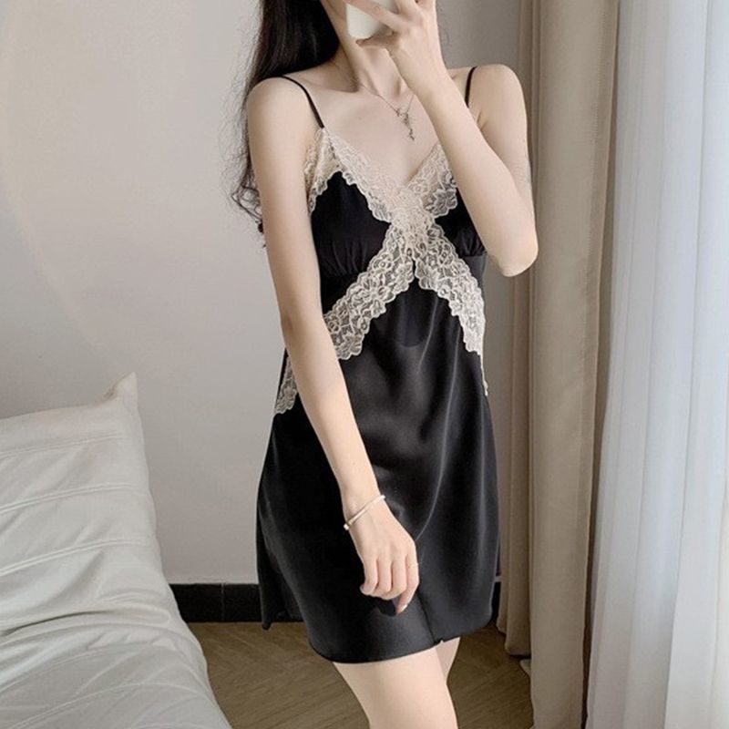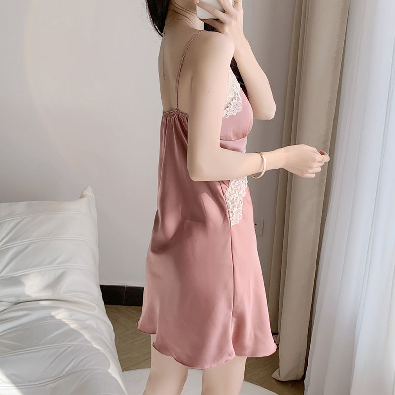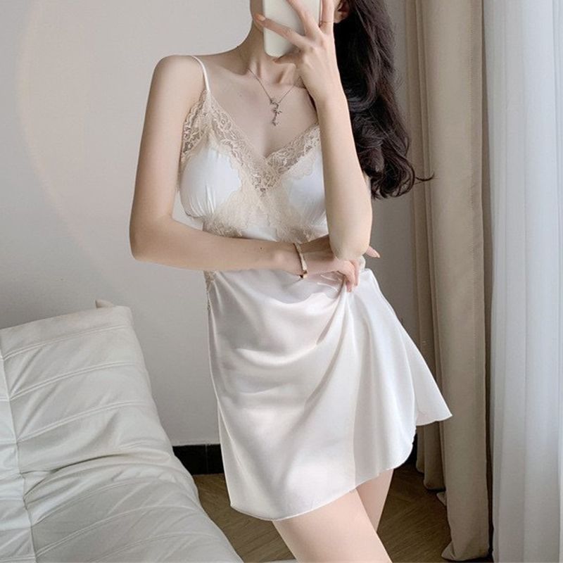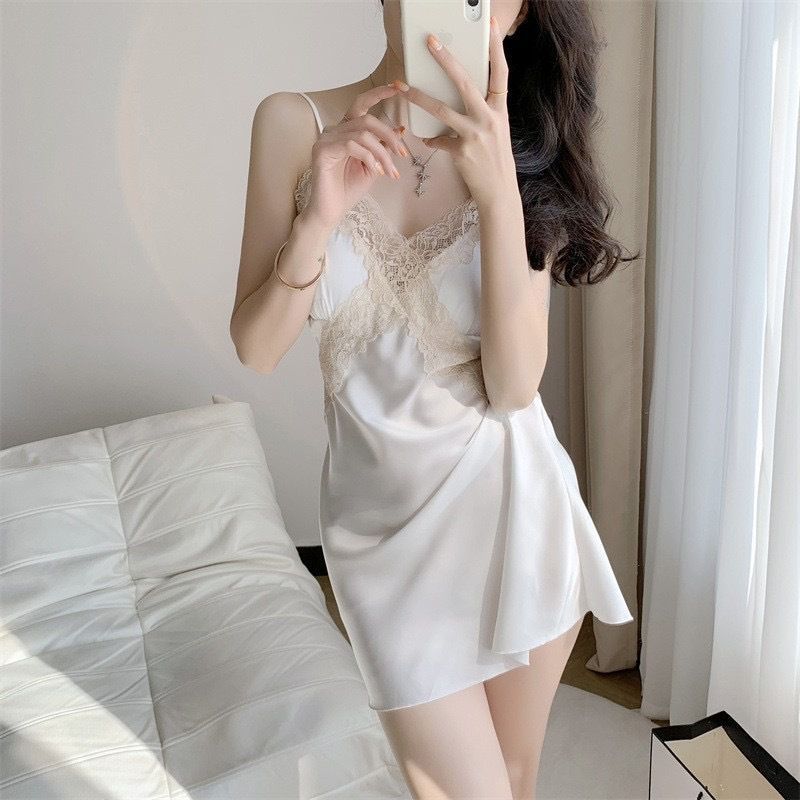 섹시한 파자마 여성의 여름 아이스 실크 썰기 순수한 욕망 레이스 나이트 가운 가슴 패드 고급 감각 얇은 유혹 치마